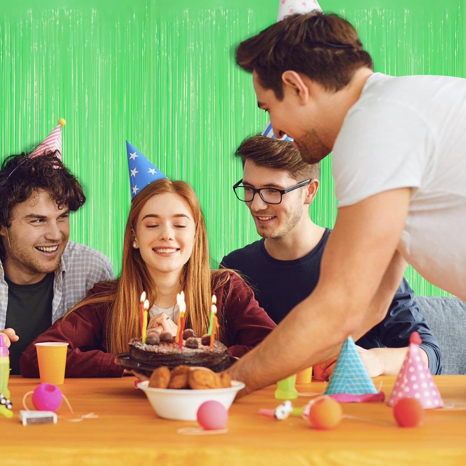 - {Party Partner}: Great Party Decoration Partner - This shiny tinsel foil curtain is perfect for all kinds of party decorations, such as birthday parties, baby showers, graduation parties, engagement parties, bachelor parties, wedding parties or holiday parties.