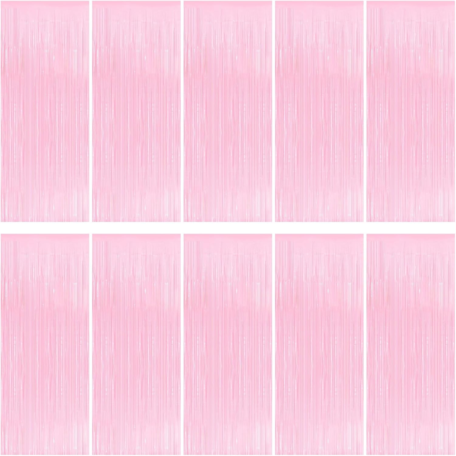 10 Pack Pink Foil Curtain Backdrop 3.2ft x 8.2ft Macaron Tinsel Foil Fringe Curtains Streamer Photo Booth Backdrop for Birthday Party Baby Shower Engagement Wedding Holiday Decoration (Macaron Pink)