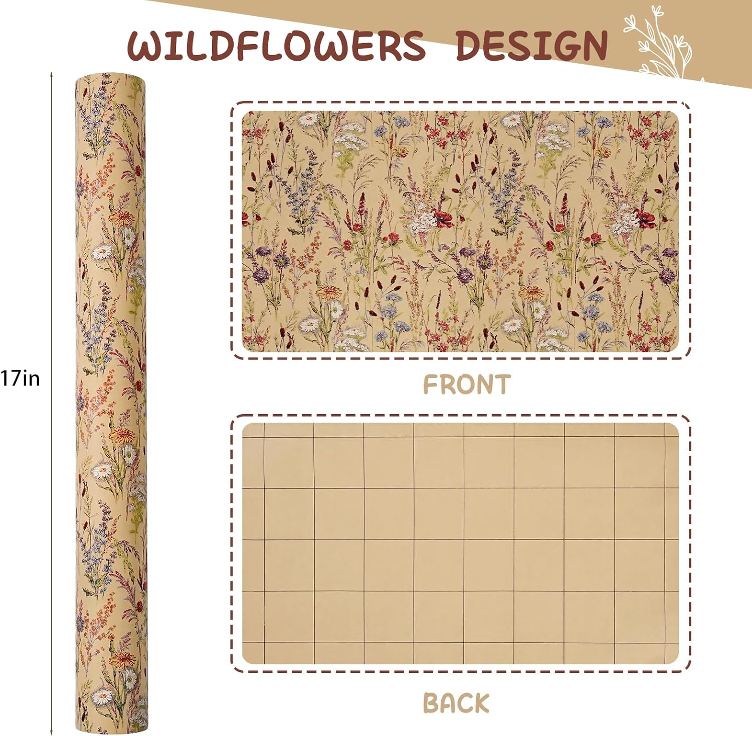 - WILDFLOWER GIFT WRAP: Adorned with dainty wildflower prints, this 17 x 33' roll (46.8 sq ft) offers effortless charm for small to medium gifts, ldeal for boho weddings, spring celebrations.and everyday gifting always check gift sizes before ordering!