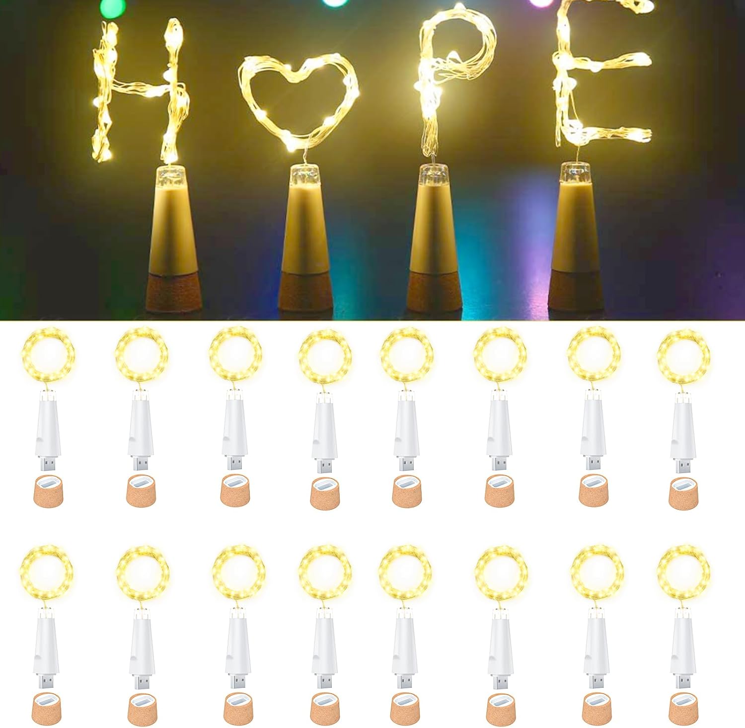 USB Bottle Lights Rechargeable Wine Bottle Fairy Lights Cork LED String Lights 20 LEDs Copper Wire for Table Party DIY Decor