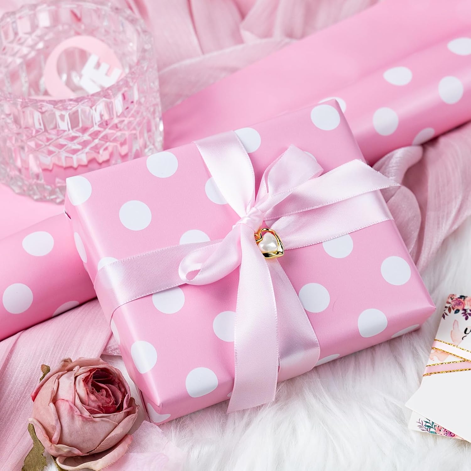 - Double-Sided Wrapping Paper: One side has pink and white polka dots, and the other is solid pink, making your gift wrap both fun and elegant