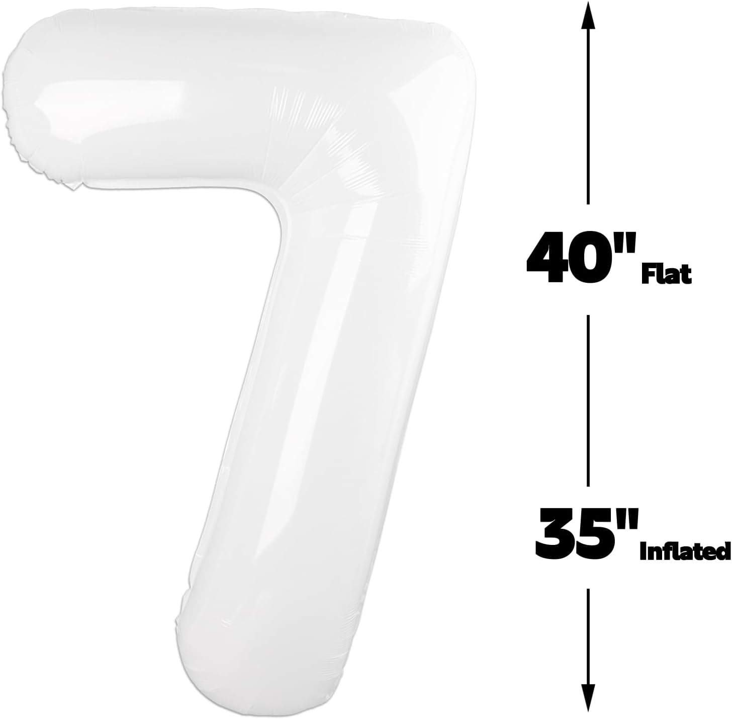 - 4.Perfect Size Simple Installation: 40 inch white 7 foil balloons, huge size beautiful number seven appearance. Giant 7 birthday balloon can reduce the complexity of installation, you can use a straw at the white birthday decorations hole, with natural air to blow and deflate the 40 inch balloons, filled 90% of the seal, without fingers tied, greatly reduce the installation troubles. After big numbers for party decorations, use a straw or deflate yourself, Amazing convenient white foil balloons!