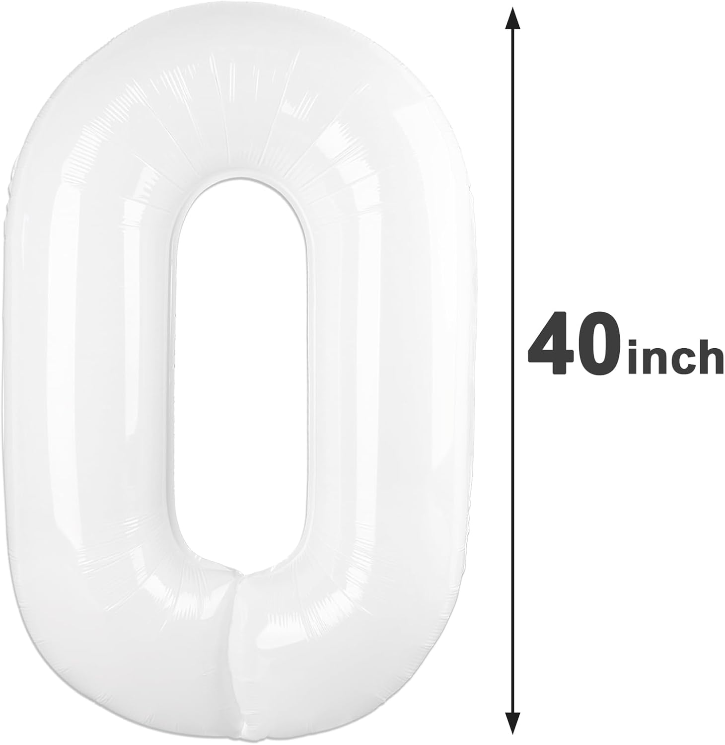 White Helium Number Balloon 40 Inch, Giant Foil White Number 0 Birthday Balloons, Large Numbers 10 20 30 40 50 60 70 80 90 100 2025, Party Celebration Supplies Decorations