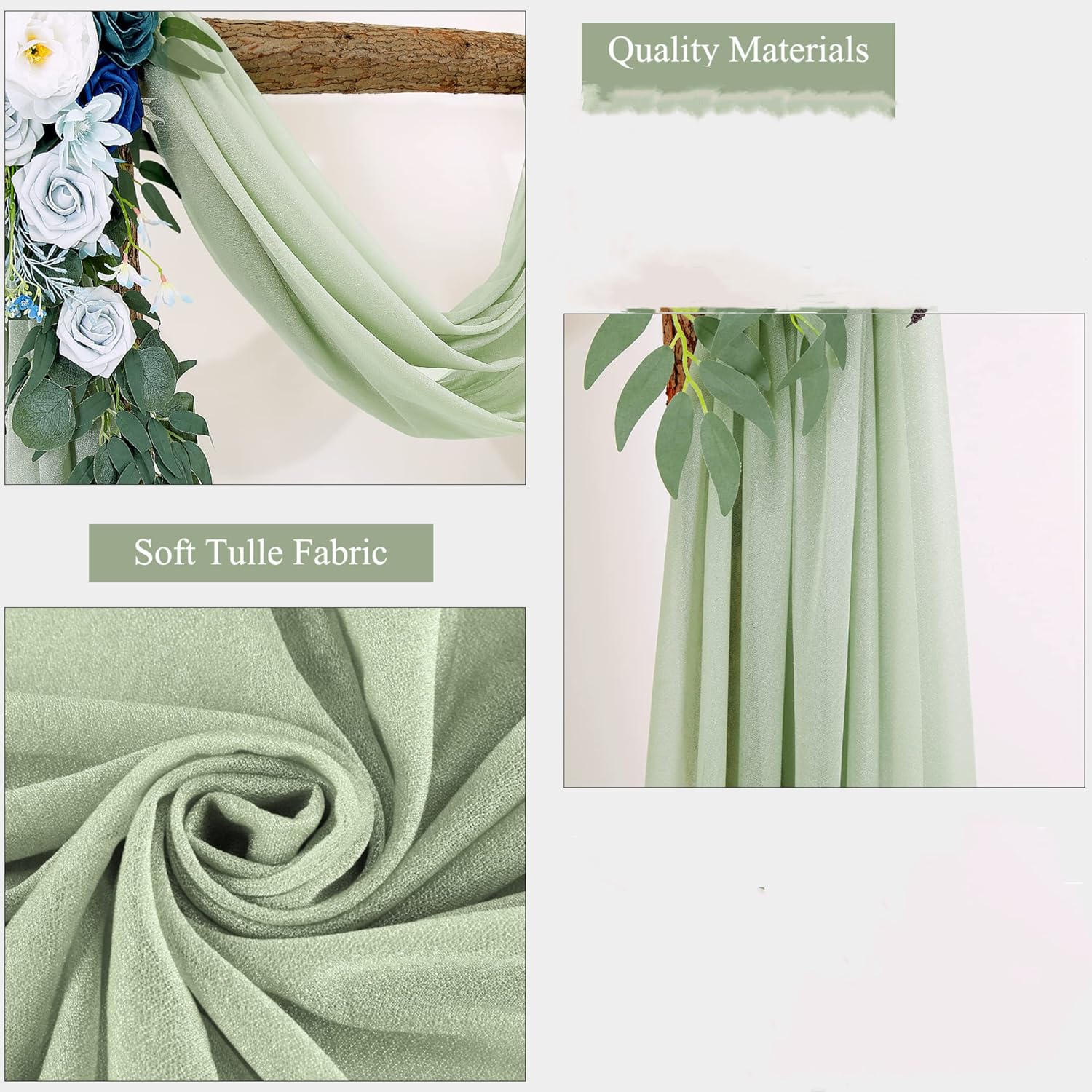 - Sage Green Wedding Arch Draping Fabric: Crafted from 100% high-quality tulle, our drapes are silky soft, lightweight, and wrinkle-free. The durable fabric ensures a smooth, elegant appearance every time, making it reusable for multiple events. Whether draped or left loose, it maintains its stunning look effortlessly.