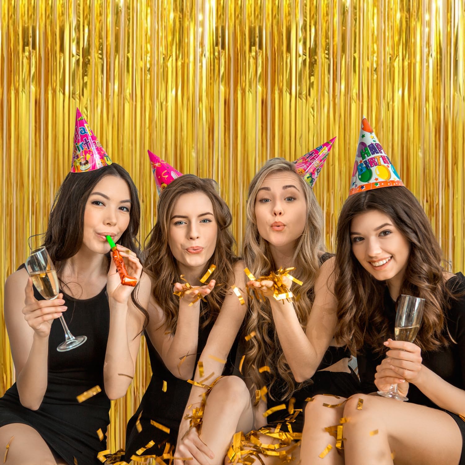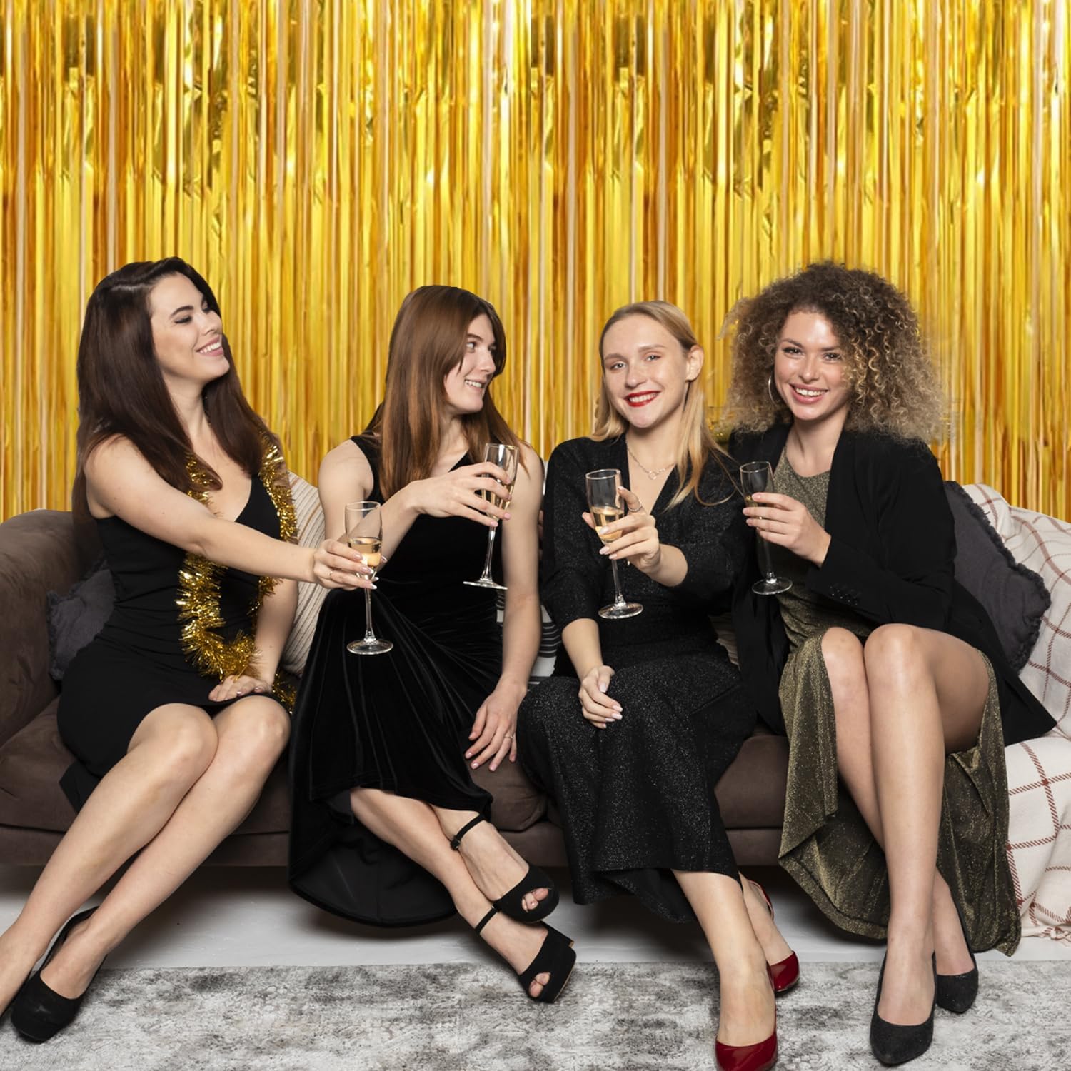 2 Pack Gold Streamers Party Decorations Gold Tinsel Backdrop Supplies Foil Curtain Backdrop for Baby Shower Birthday Bachelorette Wedding Engagement Holiday Celebration Party Decorations