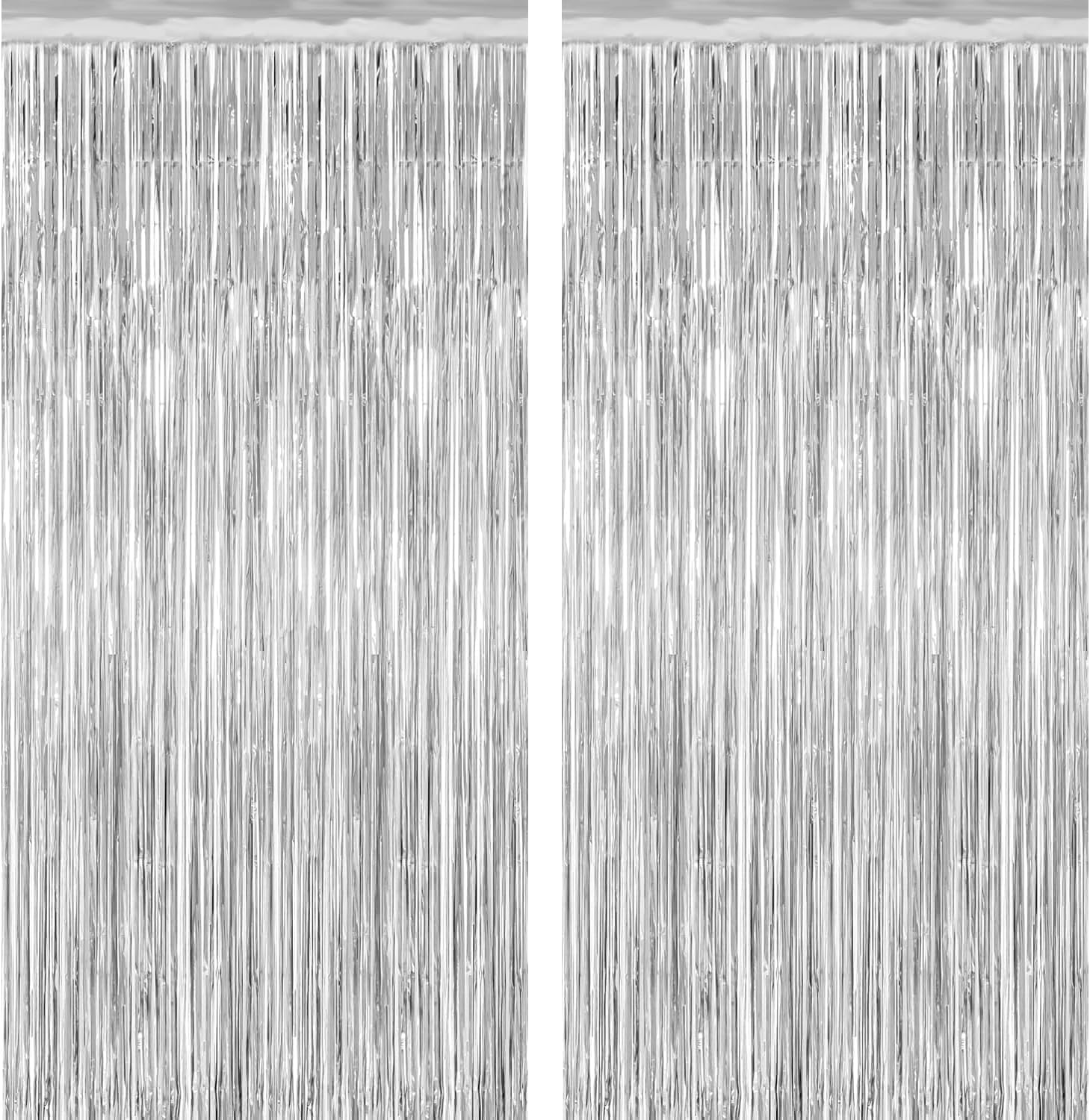2 Pack Silver Streamers Party Decorations Silver Tinsel Backdrop Supplies Foil Curtain Backdrop for Baby Shower Birthday Bachelorette Wedding Engagement Holiday Celebration Party Decorations