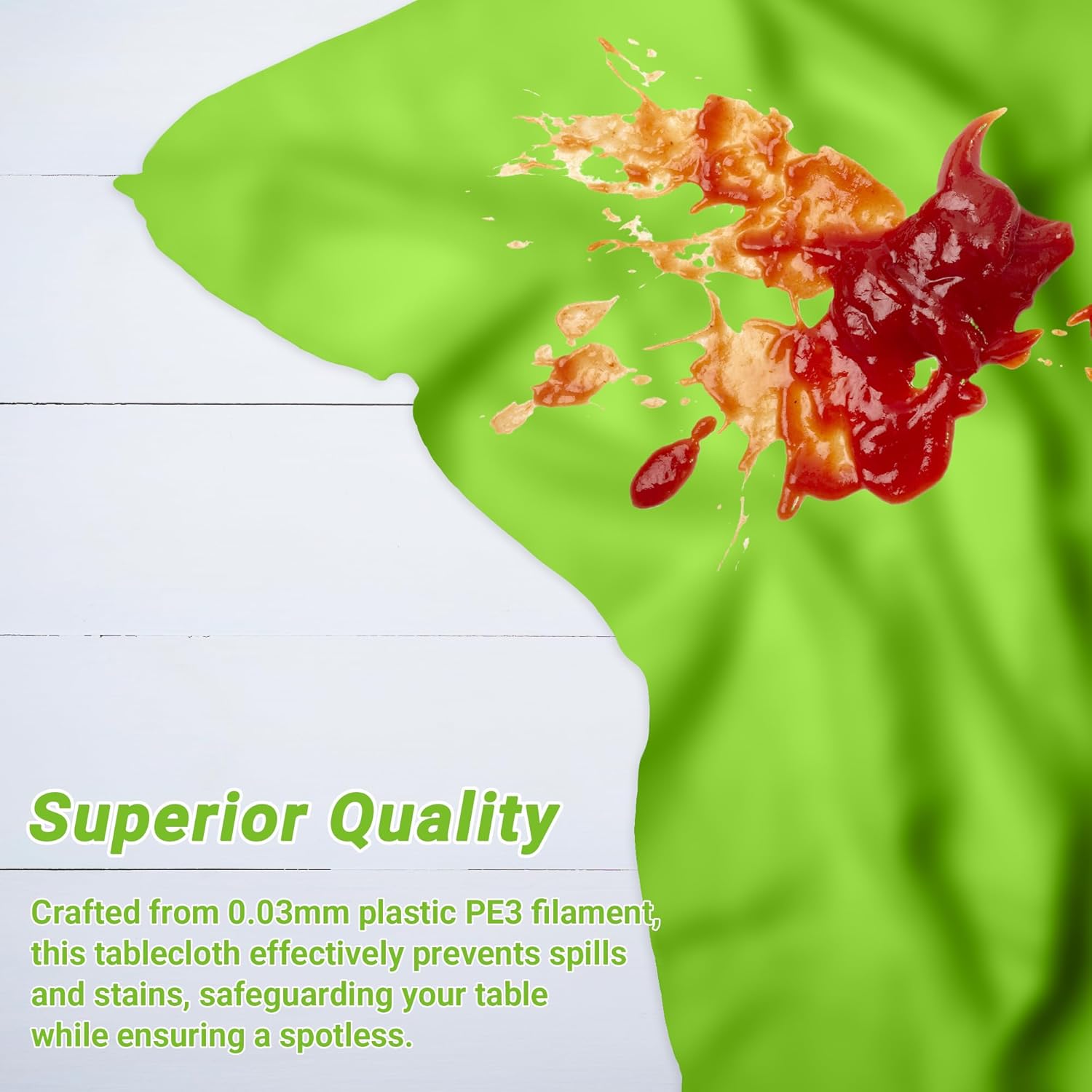 - Long-lasting and Safe: Made from 0.03mm plastic PE3 filament, these disposable light green tablecloths are sturdy, food-grade and designed for frequent use.