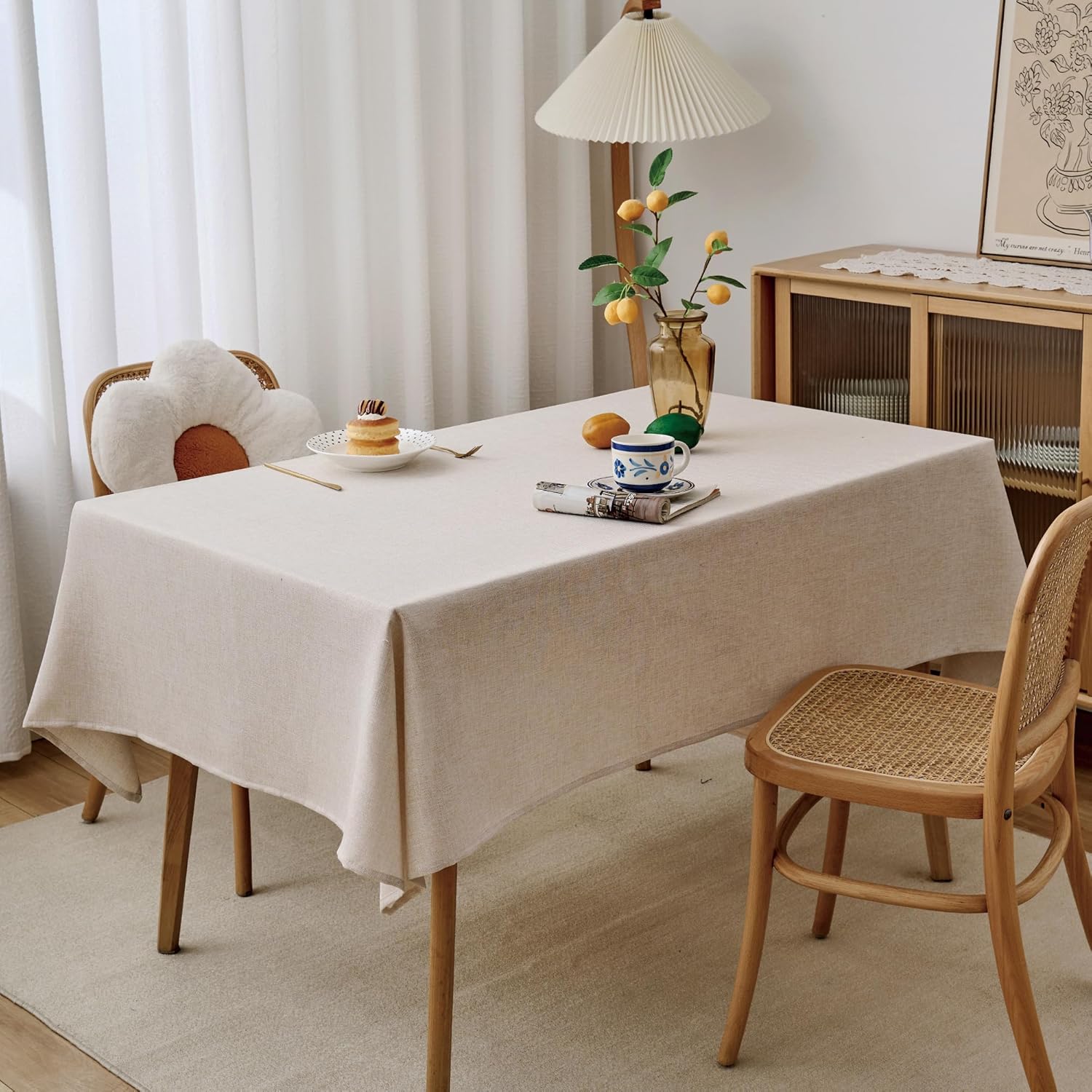 NLMUVW Linen Tablecloth Rectangle, Rustic Textured Table Cloth Water Resistant Farmhouse Table Cover for Kitchen Dining Party Coffee, Oatmeal, 54x108 Inch