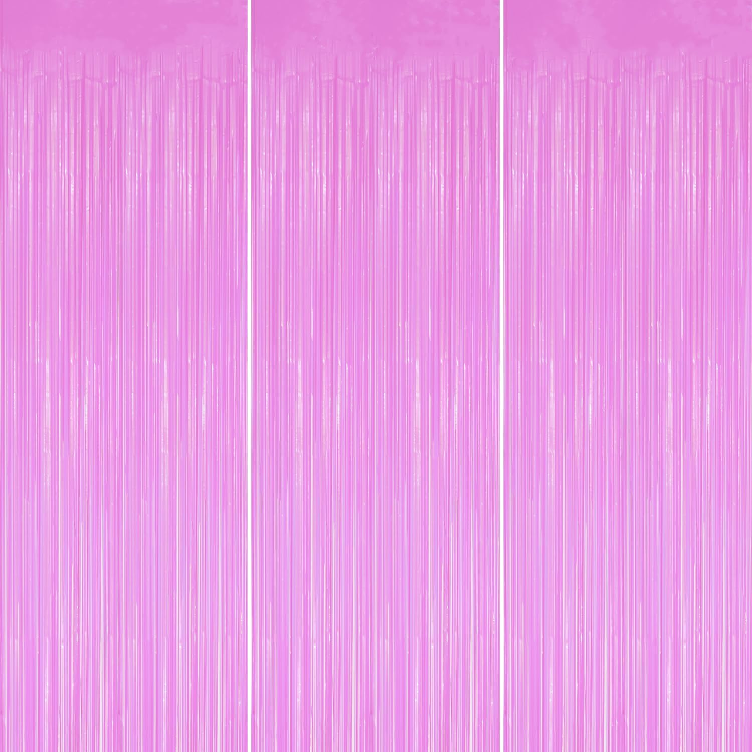 3 Pack Foil Fringe Backdrop - Pastel Purple Shiny Tinsel Curtains for Party Decoration/Photo Booth Props - 3.3x8.2 FT Metallic Foil Backdrop for Birthday, Wedding, Graduation, Christmas.