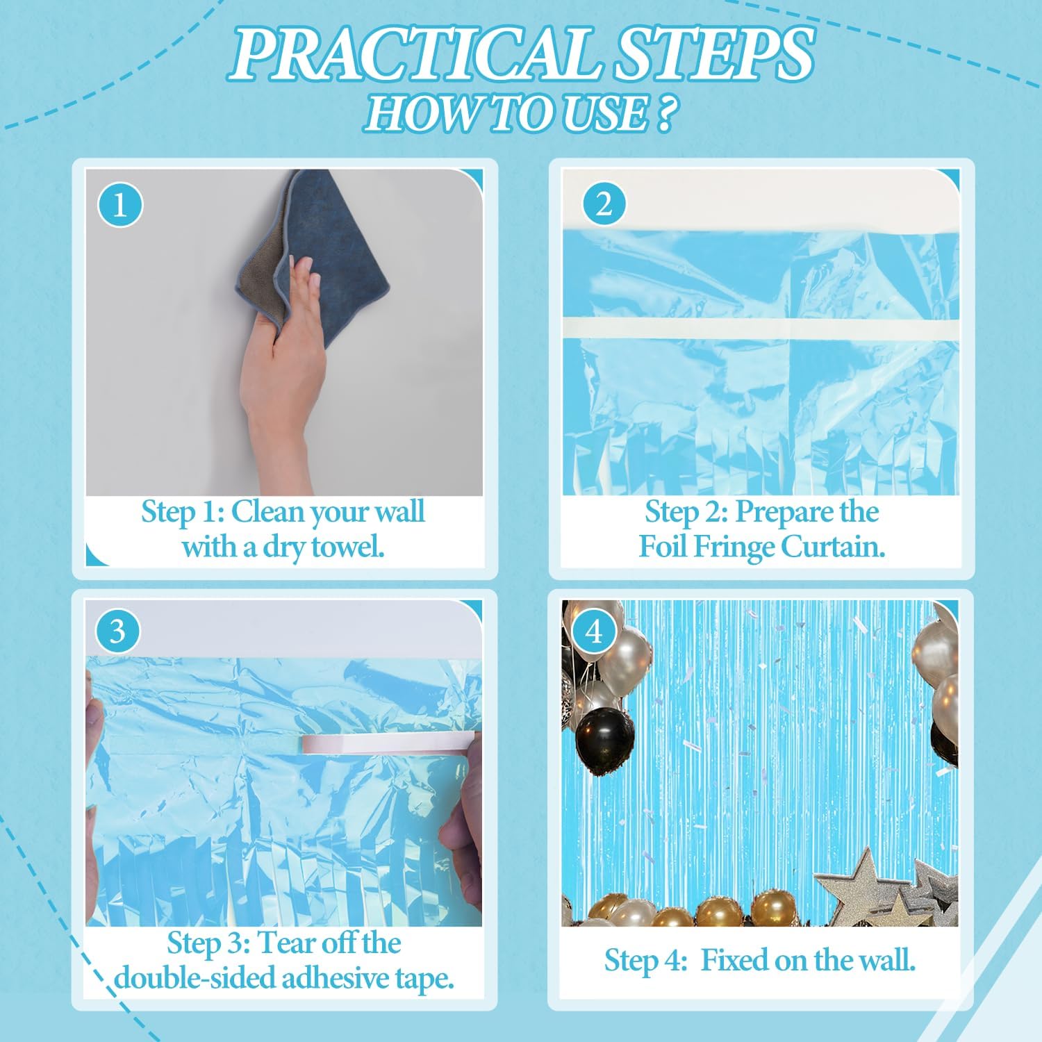 - 【Easy and Convenient Installation】These foil fringe curtains are easy to install and can be quickly hung on smooth surfaces using the included double-sided adhesive tape. No extra tools or materials required.