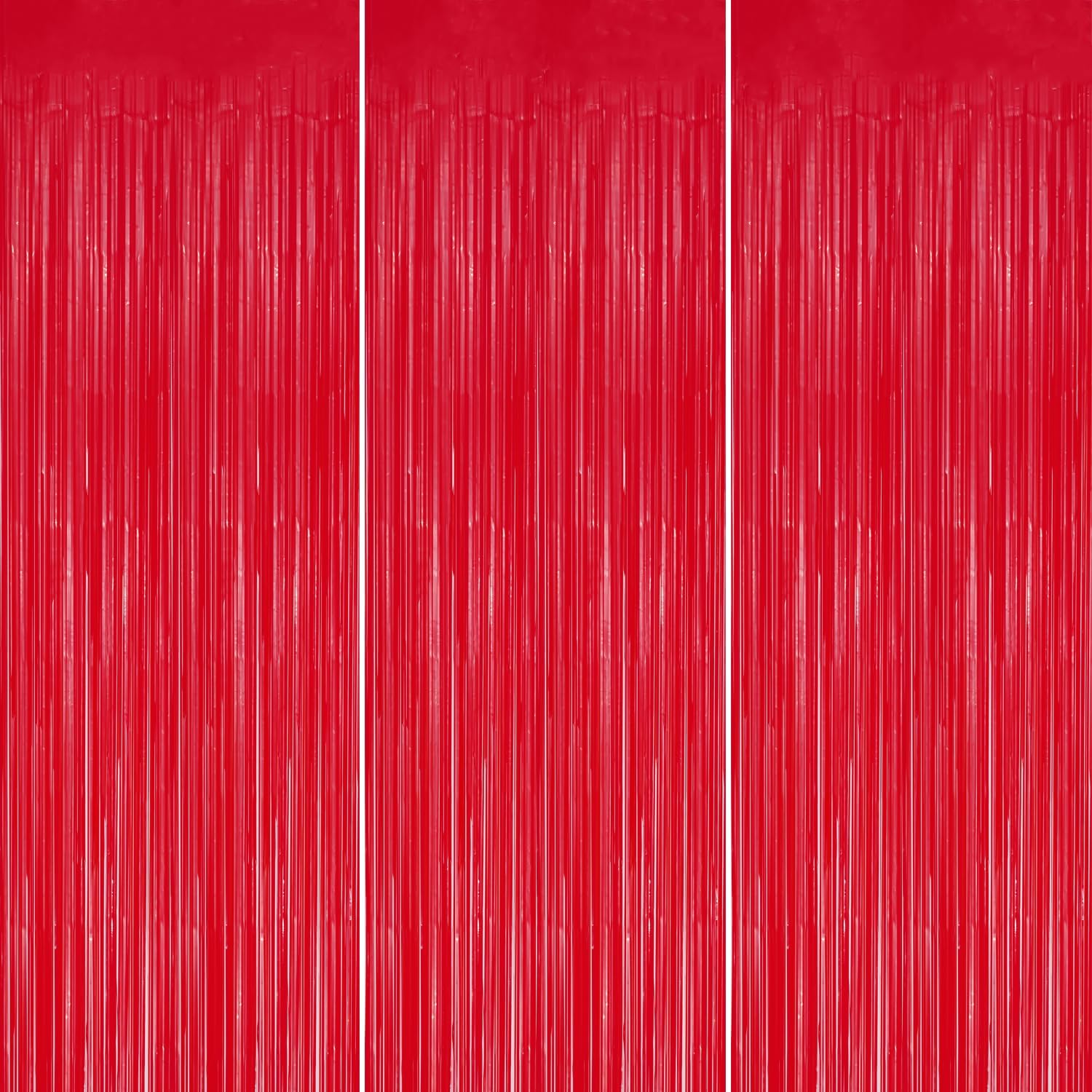 3 Pack Foil Fringe Backdrop - Pastel Red Shiny Tinsel Curtains for Party Decoration/Photo Booth Props - 3.3x8.2 FT Metallic Foil Backdrop for Birthday, Wedding, Graduation, Christmas.