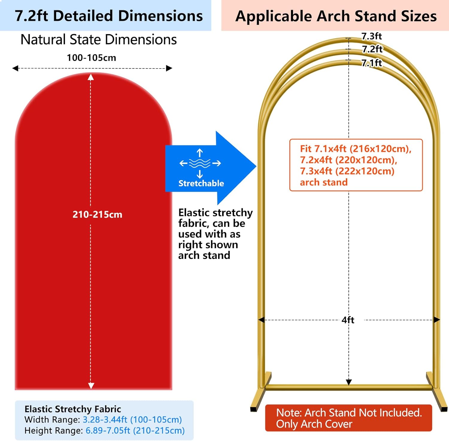 - Universal Elastic Fit (7.1-7.3FT H x 4FT W): Our premium stretch fabric drapes naturally at 6.8-7.0FT x 3.2-3.4FT. Perfectly fit standard arches from 7.1FT to 7.3FT in height and 4FT in width. ⚠Note: Metal arch backdrop stand is not included.