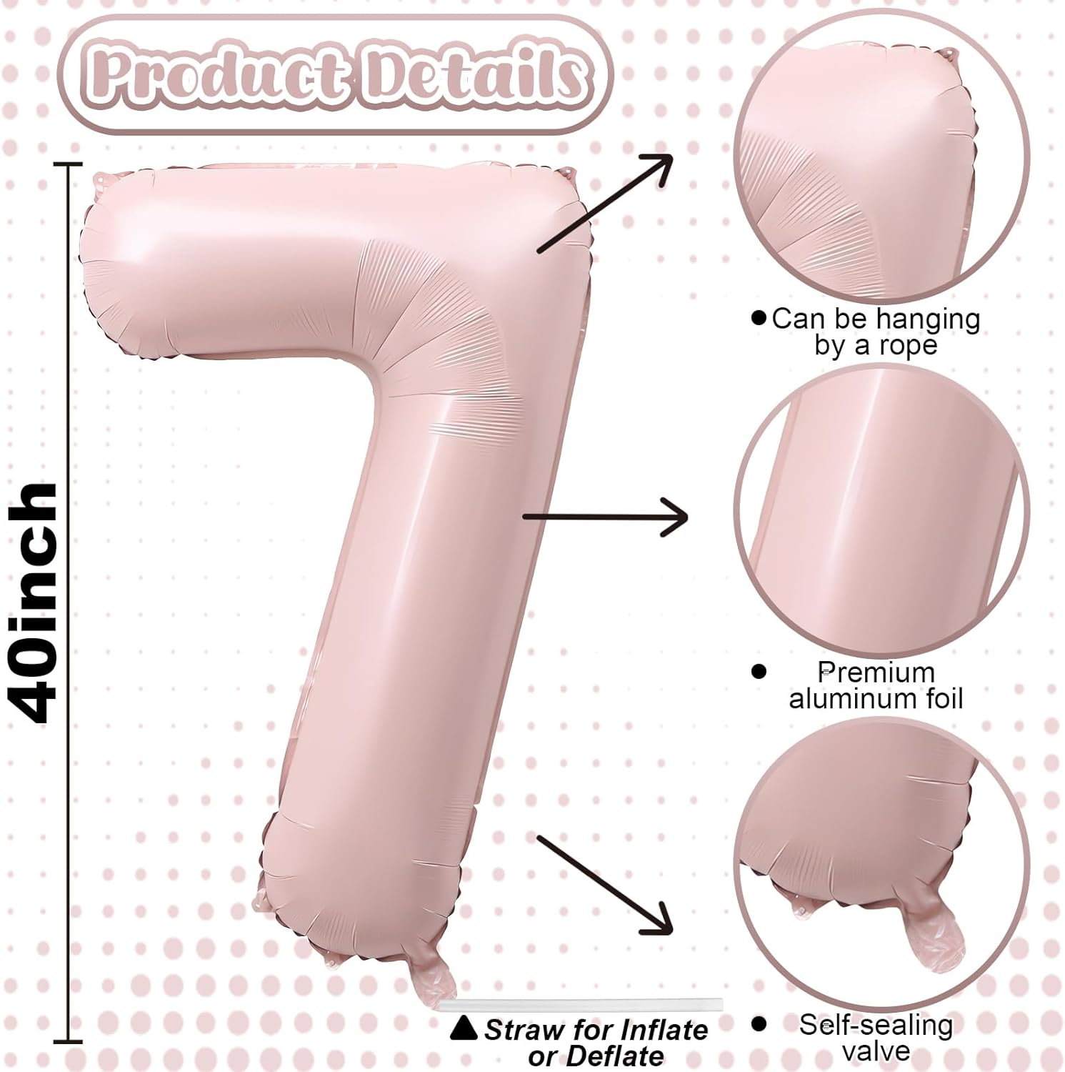 - Baby Pink Number 7 Balloon 40 Inch: Includes 1pc 7 balloon and a straw for easy inflation and deflation. This helium balloon is perfect for birthdays, anniversaries, or special occasions like a 7th, 17th, 27th, or 70th celebration