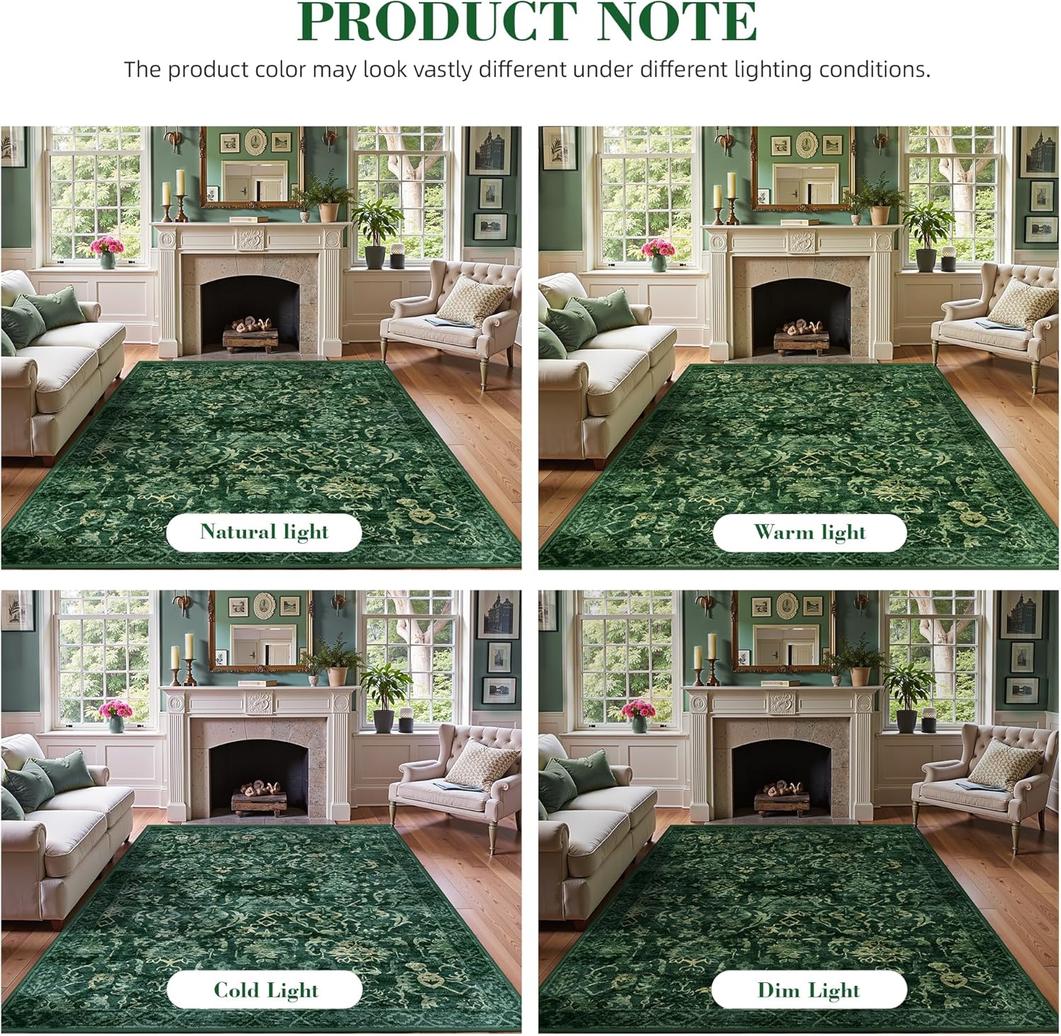 Dark Green Area Rugs 6x9 for Living Room, Washable Vintage Rugs for Bedroom, Distressed Throw Rug, Non Slip Rug Carpet for Bedroom Dining