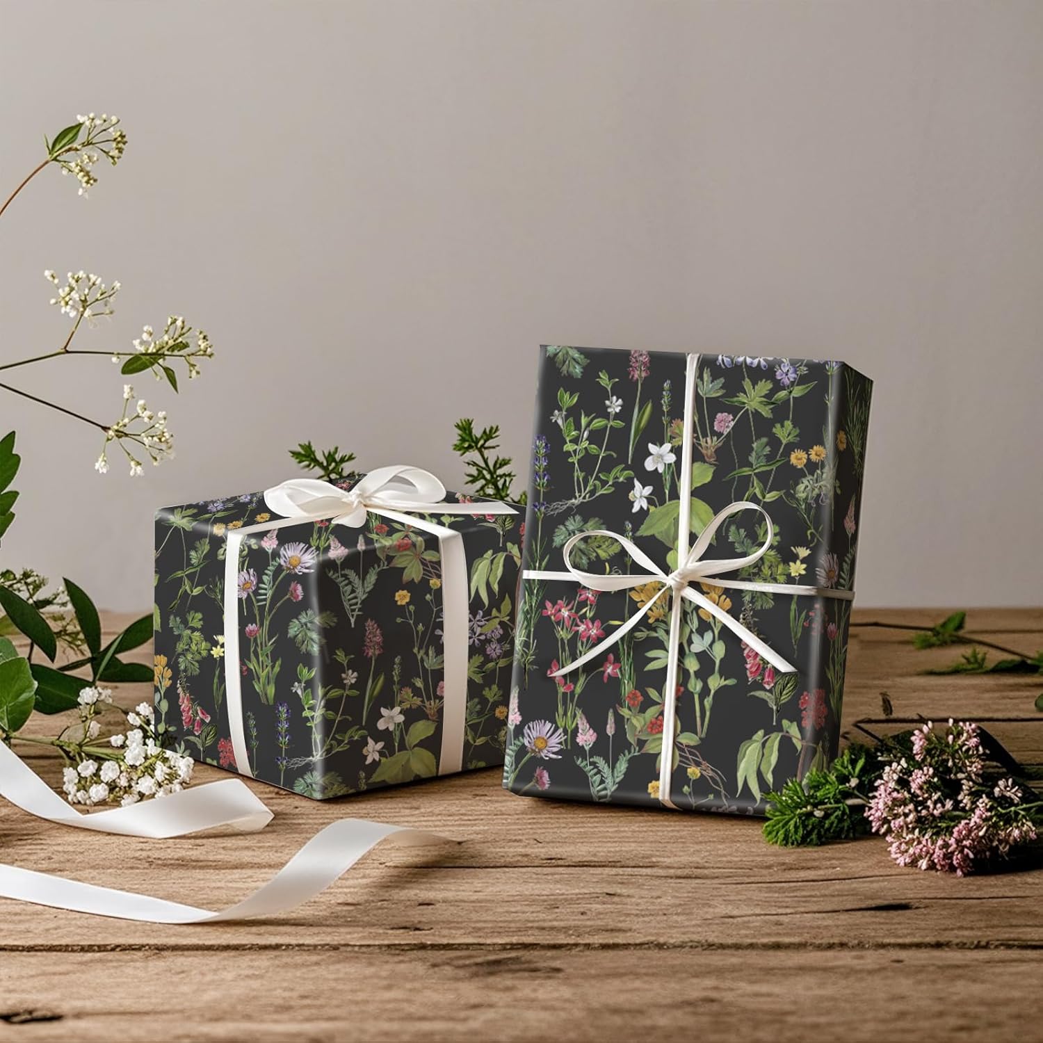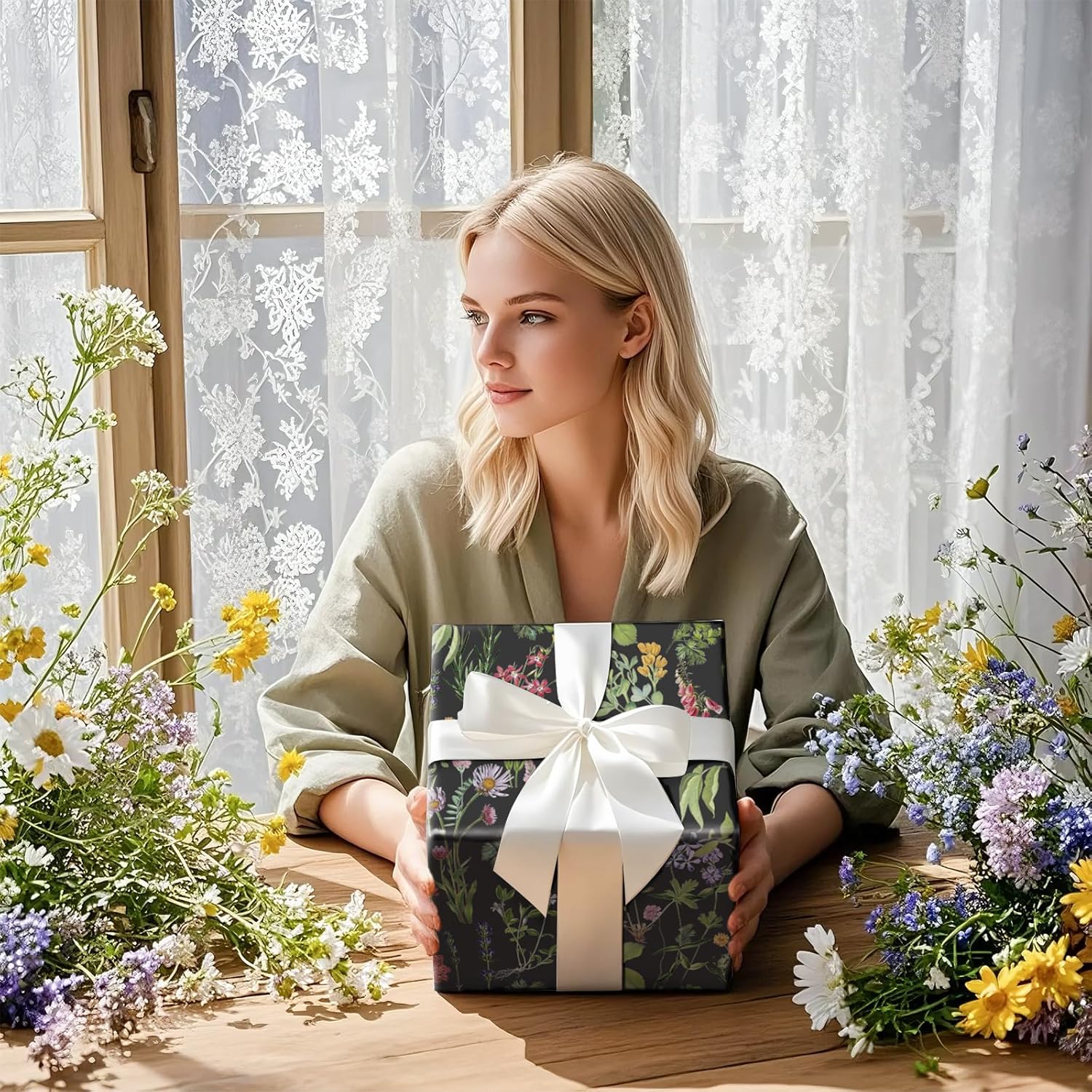 - Timeless Wildflower Design: Adorn your gifts with a colorful wild flower print on black background that exudes charm and elegance. The flower wrapping paper make it ideal for creating a wonderful gift presentation that leaves a lasting impression