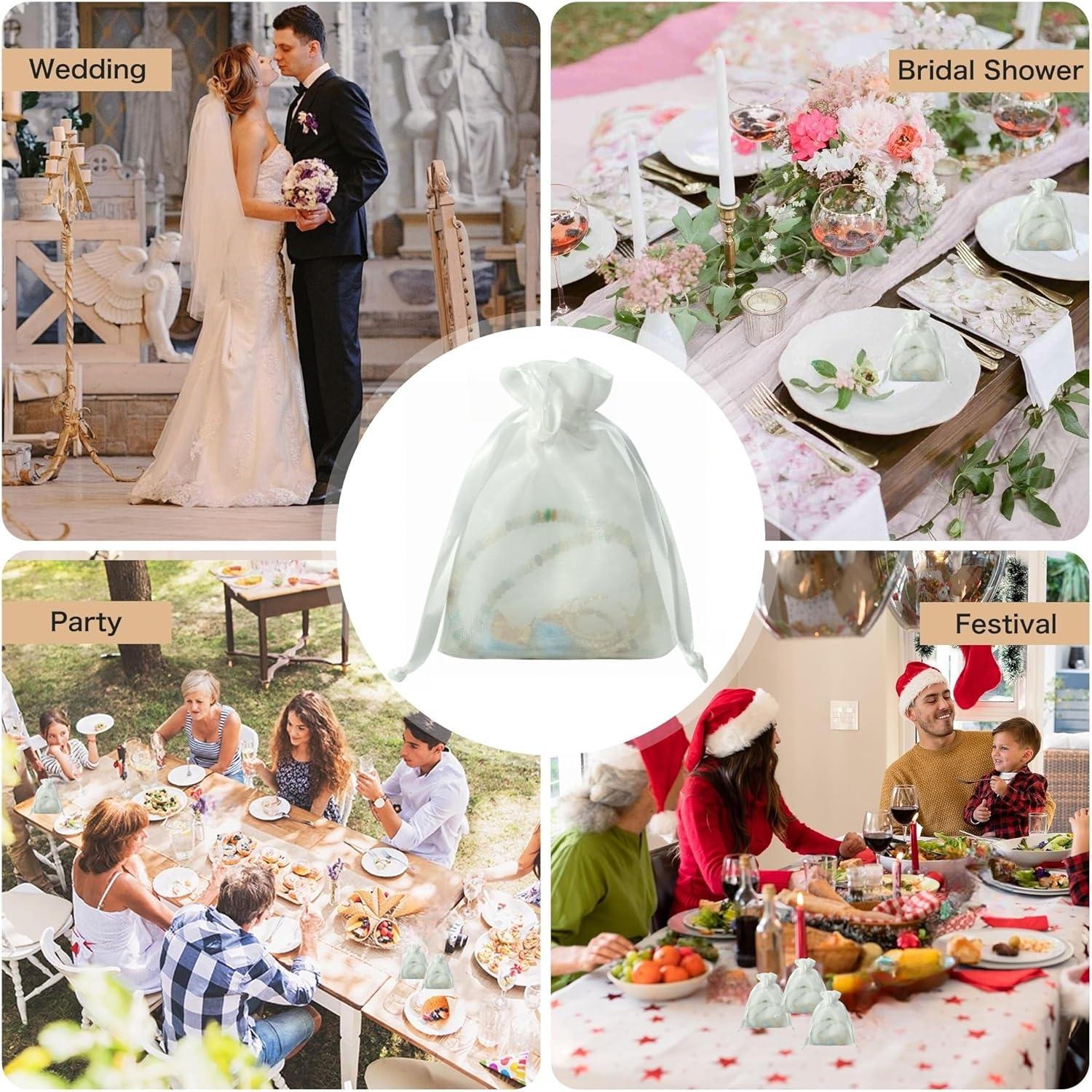 - OCCASIONS: Embrace the versatility of our organza drawstring bags for weddings, bridal and baby showers, birthday parties, christmas, Thanksgiving Day, Valentine's Day, Mother's Day and more. Whether you need bags for small business or simply gift for friends and family, our bags will elevate the presentation