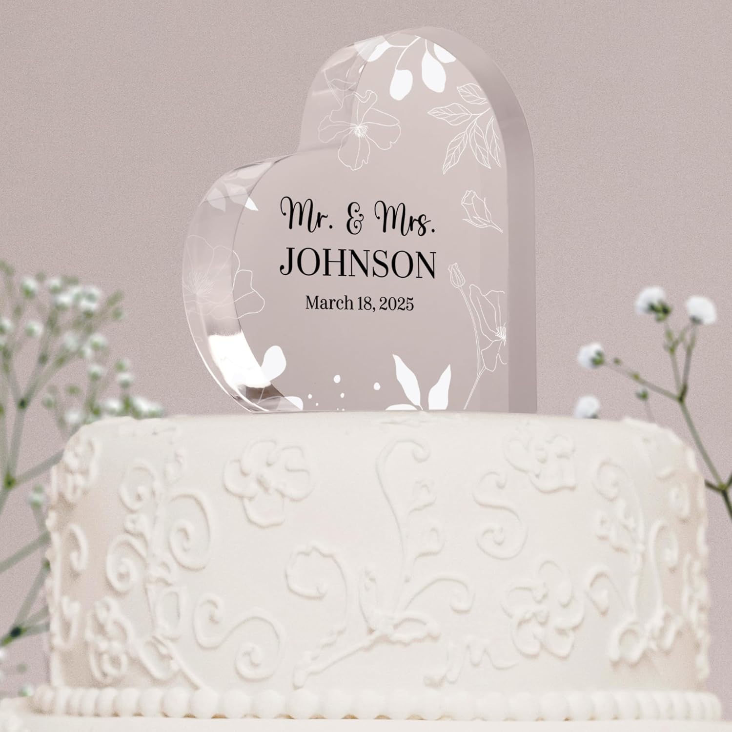 - Durable Quality: Made from premium acrylic, this topper is both lightweight and durable, ensuring it will stand the test of time as a cherished keepsake that will remind you of your big day for years to come.