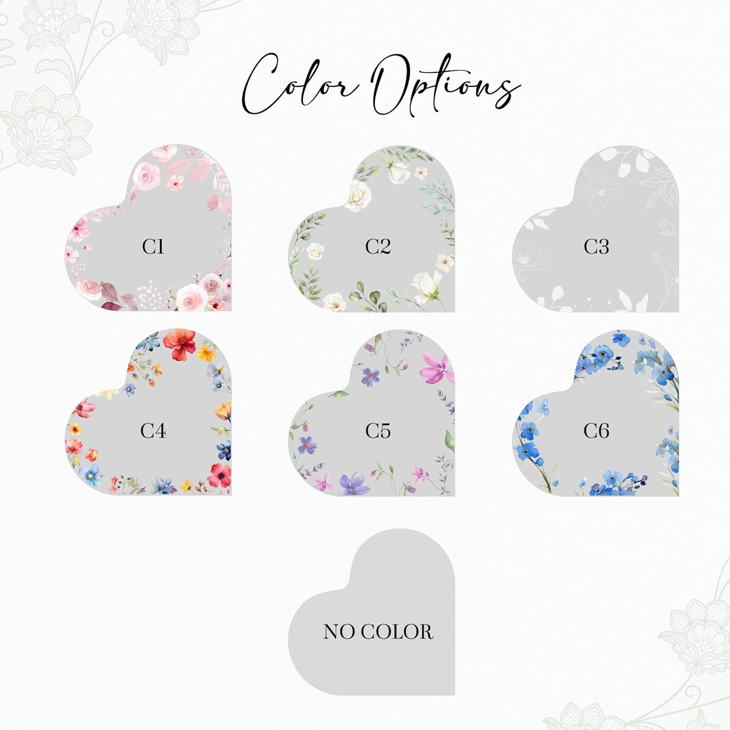 - Vibrant Color Choices: With 7 color options (inccluding “No Color” option), you can select the color that best complements your wedding color palette, ensuring your cake topper blends seamlessly with your décor/theme.