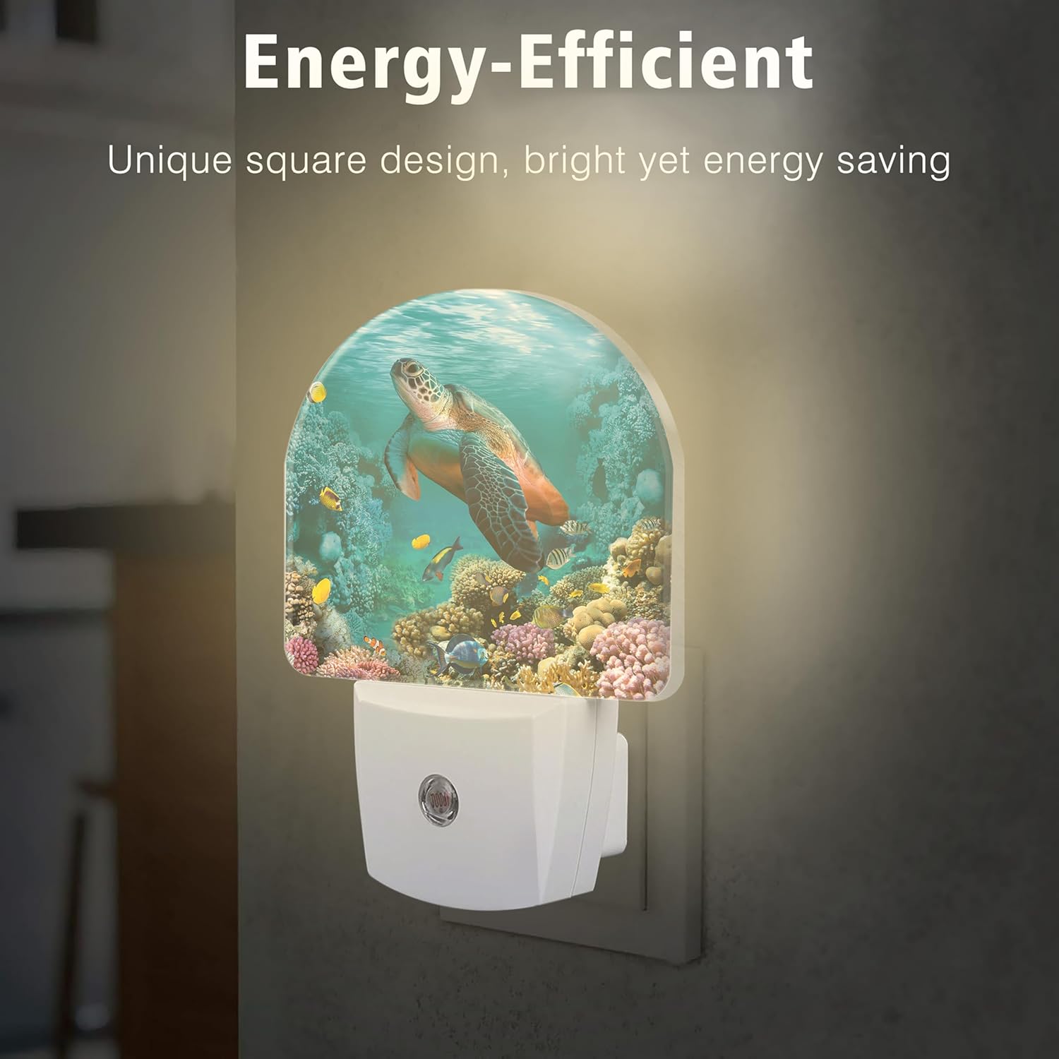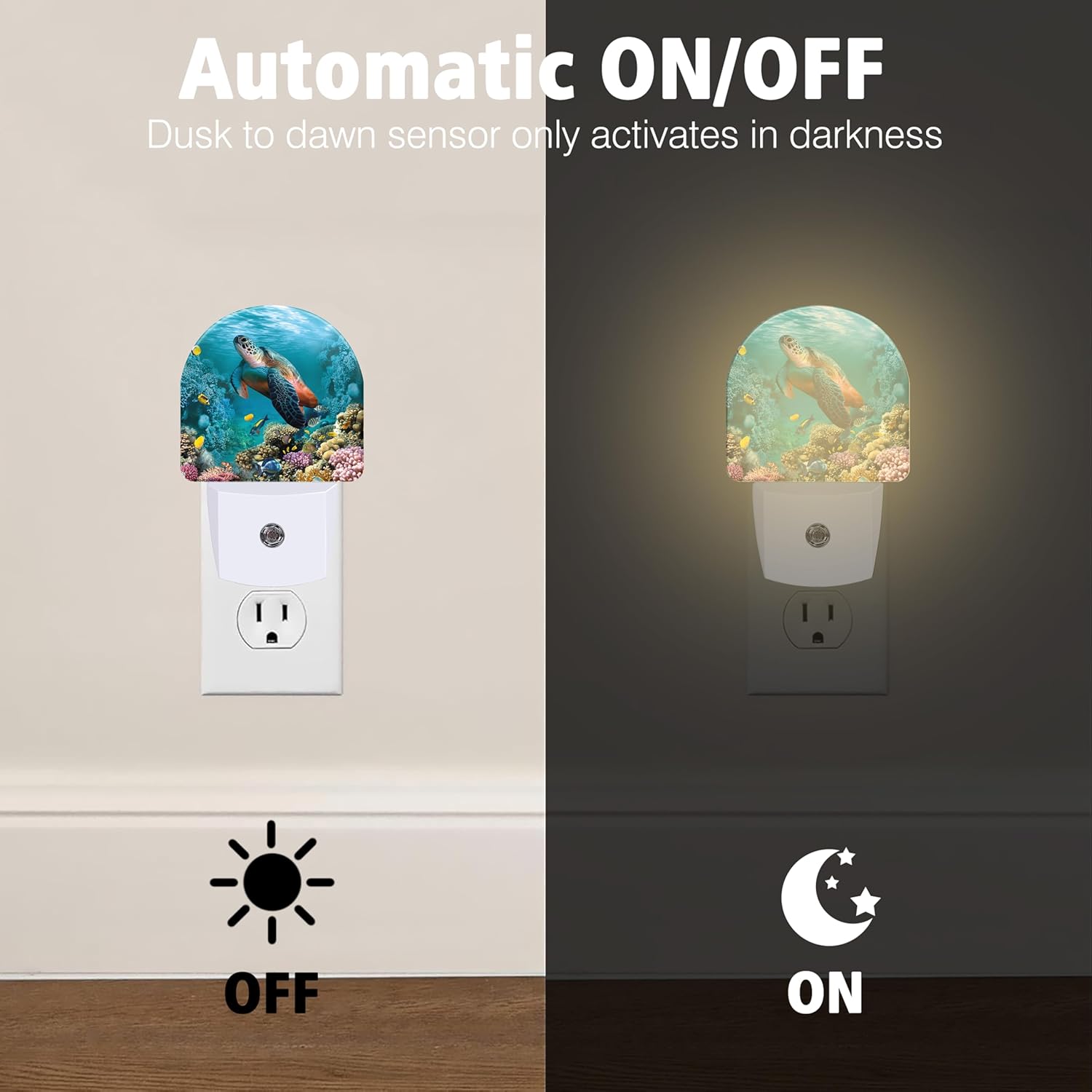 Underwater World Night Light Plug into Wall with Dusk to Dawn Light Sensors Sea Turtle Corals Fish Night Light LED Lamp for Bedroom Hallway Home Wall Decor Nightlight for Girls Boys Men Women