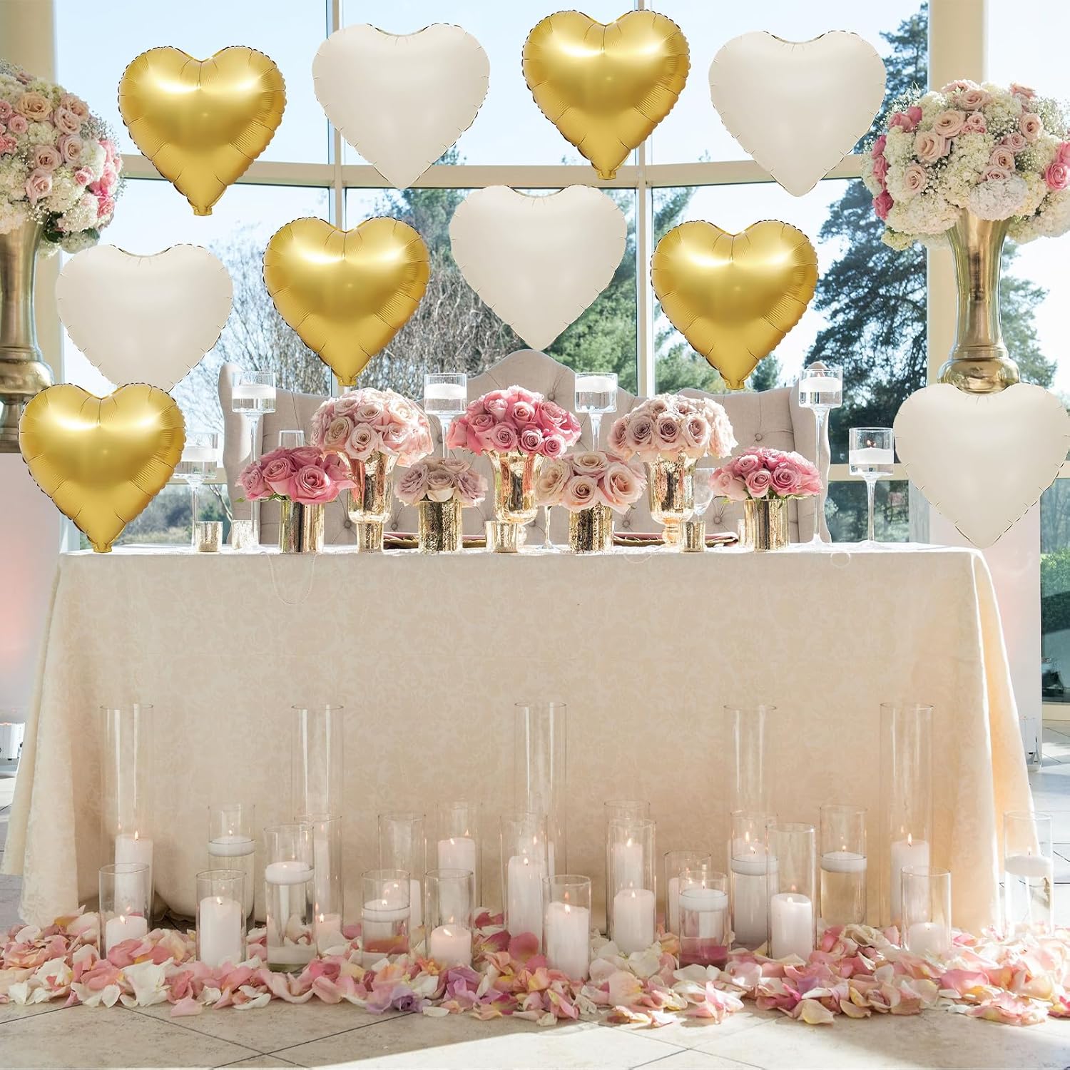 - WIDELY APPLICATION:This white gold heart balloon can be used for a variety of occasions,such as birthday,anniversary,Valentine's Day,Mother's Day,baby shower,gender reveal,weddings,engagement,bridal shower,marriage proposals and other parties,can also be used as a photo background,etc.Make a deep impression on the party guests.