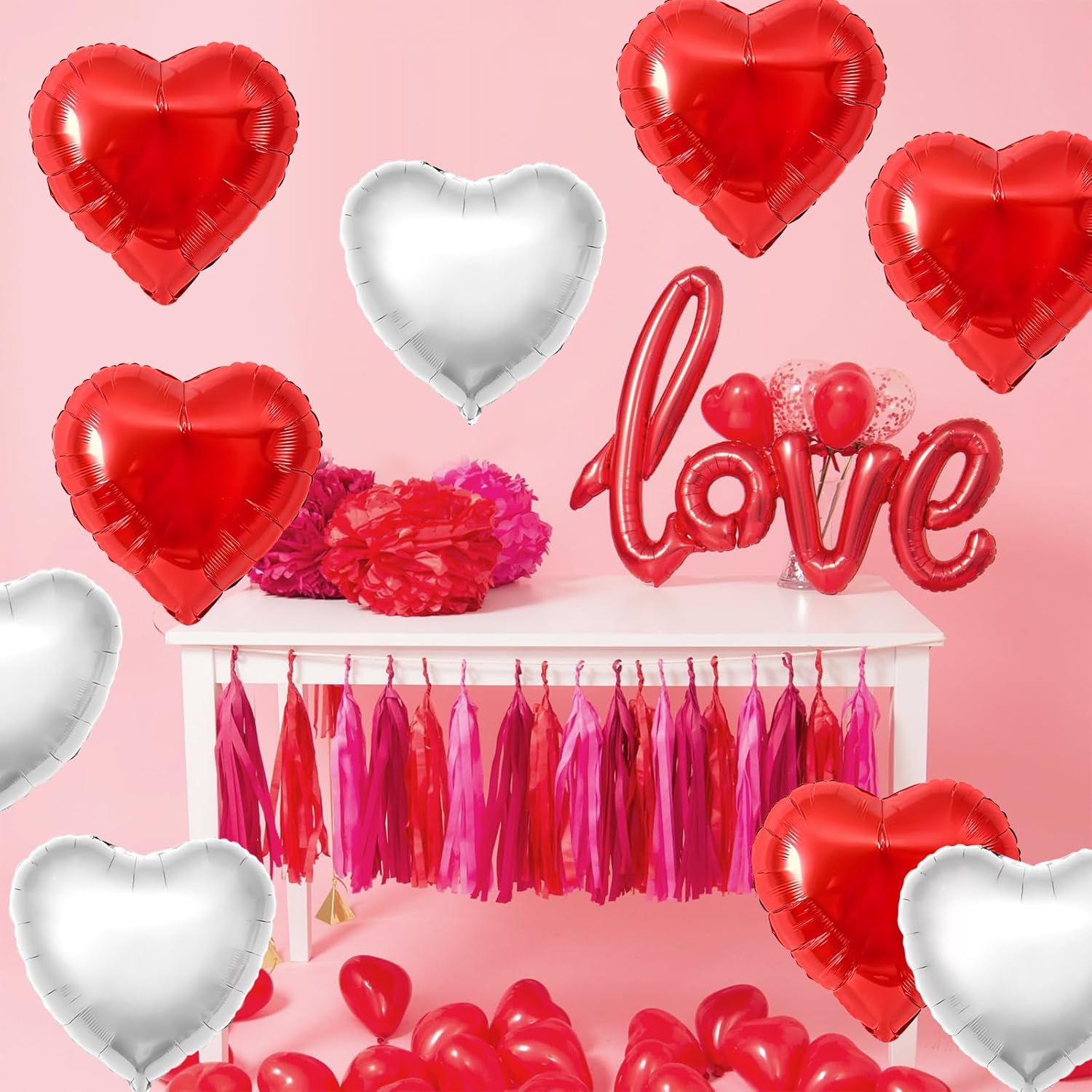 - WIDELY APPLICATION:This red silver heart balloon can be used for a variety of occasions,such as birthday,anniversary,Valentine's Day,Mother's Day,baby shower,gender reveal,weddings,engagement,bridal shower,marriage proposals and other parties,can also be used as a photo background,etc.Make a deep impression on the party guests.