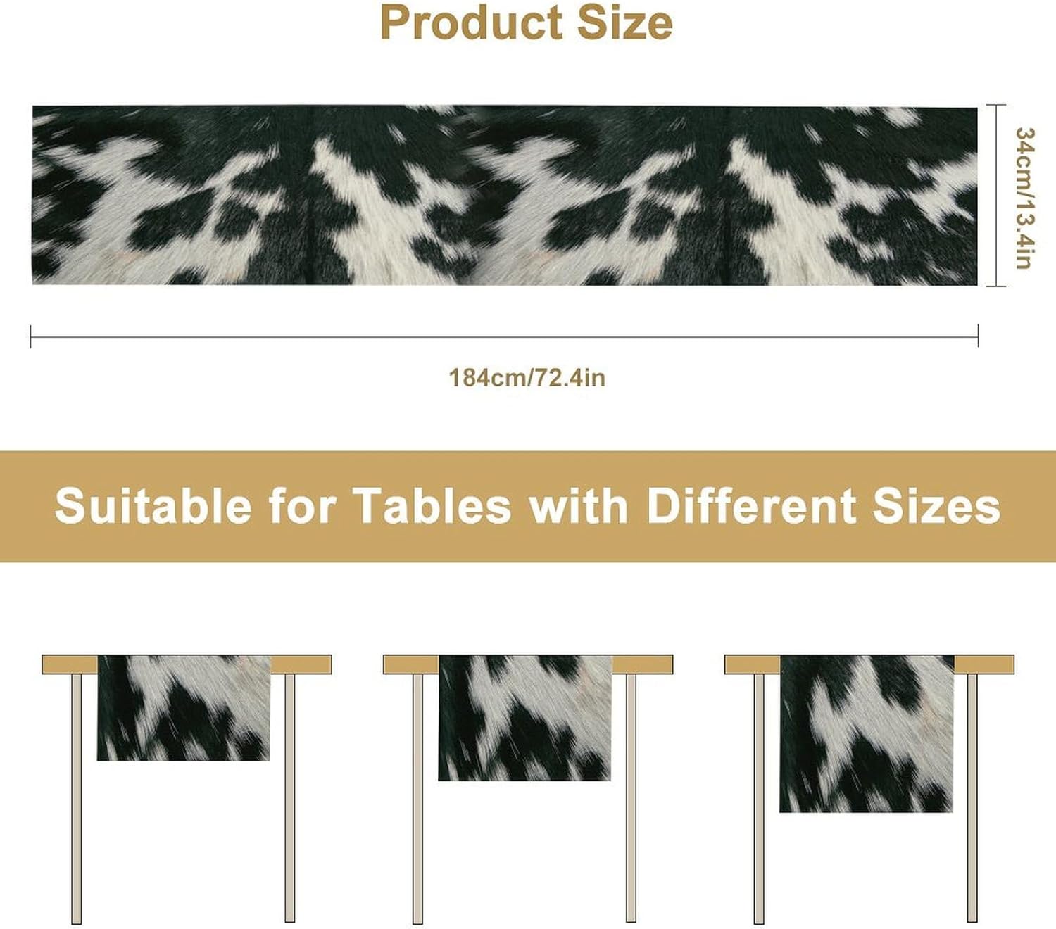 Cow Skin Print Table Runner, Rustic Country Farm Fur Skin Cowhide Pattern Western Style Black White Print Table Runner for Home Kitchen Dinning, 13x120 Inch