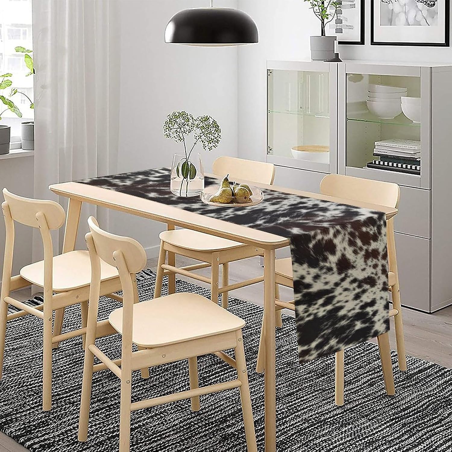 Cow Print Table Runner, Country Farm Animal Fur Skin Pattern Western Style Black Brown Cowhide Print Dinner Runner for Home Kitchen Dining Home Setting, 13x36 Inch