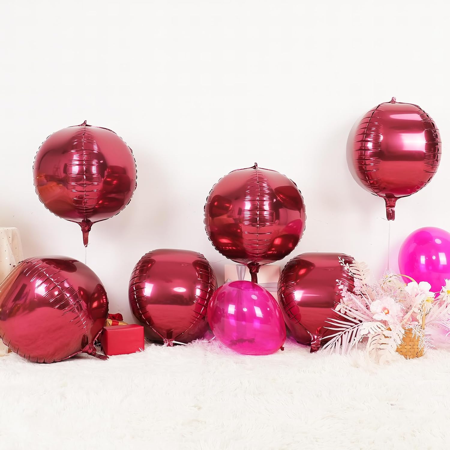 - 【6PCS ROUND BALLOONS】package include 6pcs 22inch Burgundy round giant 4D foil balloons. The Burgundy round balloons are large enough to help you better decorate your party.