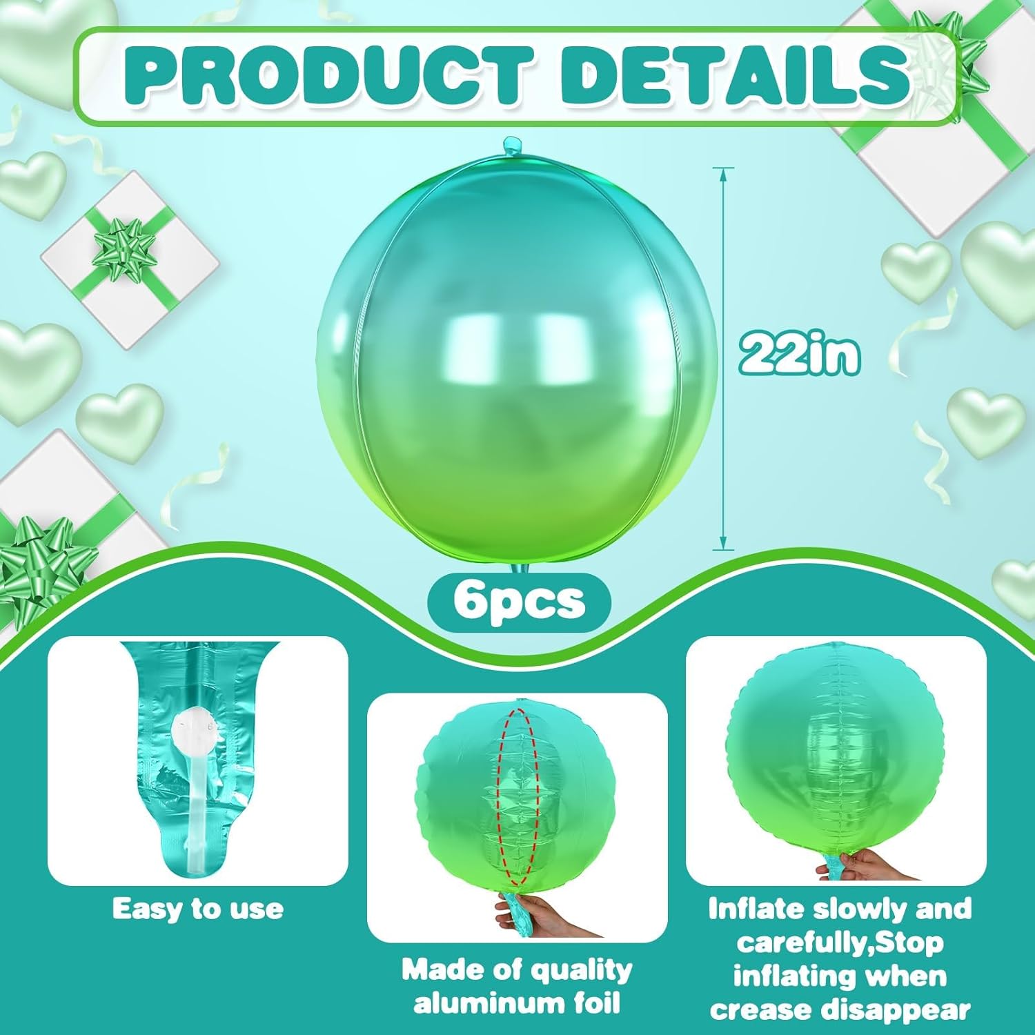 - 【6PCS ROUND BALLOONS】package include 6pcs 22inch Gradient Blue round giant 4D foil balloons. The Gradient Blue round balloons are large enough to help you better decorate your party.