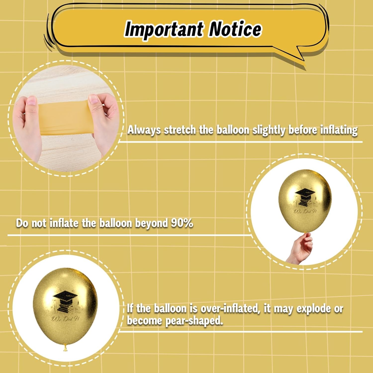 - 【Friendly Reminders】Keep gold and black balloons away from sharp objects, rough surfaces, and direct sunlight to prevent damage. To ensure the black and gold ballons last, store unused balloons in a cool, dry place. We are always committed to providing outstanding balloons and party supplies. If you encounter any problems while using our gold graduation balloons, our professional customer service team will be available to assist you at any time.