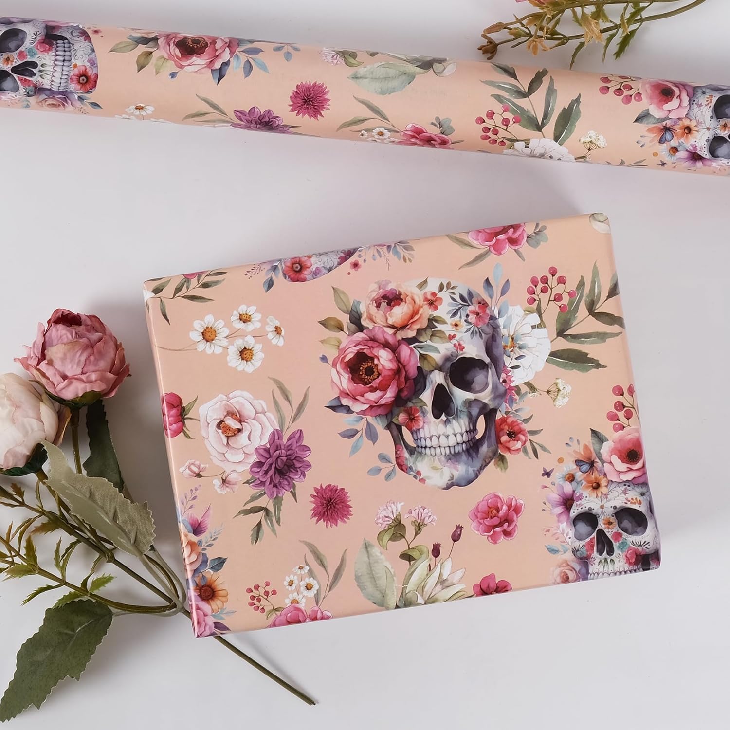- Unique & Funny Skull Flower Design - Beautiful and feminine designs, different lovely flowers are printed on thick wrapping paper, which make it ideal for creating a wonderful gift presentation that leaves a lasting impression