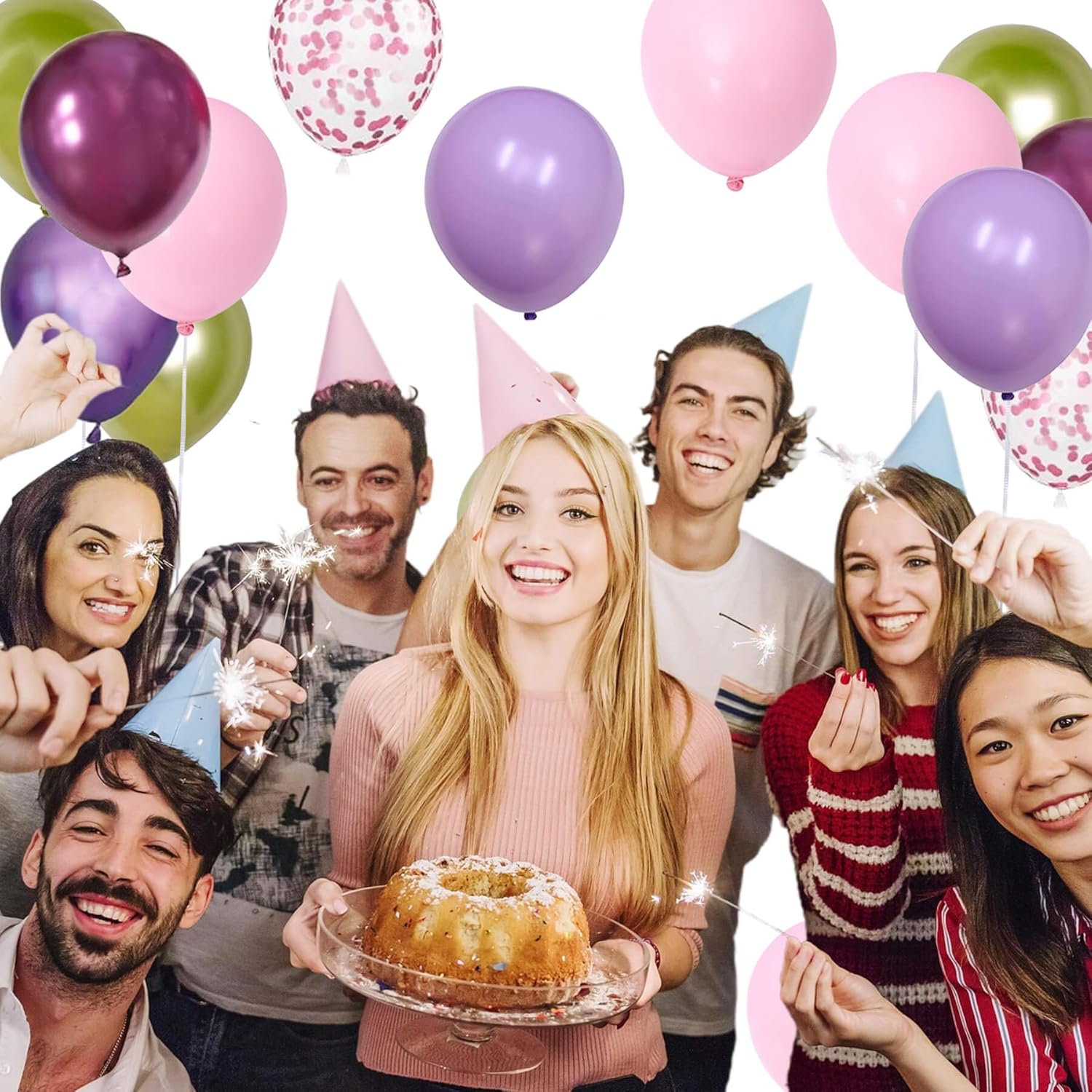 - 6 COLORS LATEX BALLOON: Metallic purple, metallic pink, pink, purple, green, confetti balloon assorted colors;