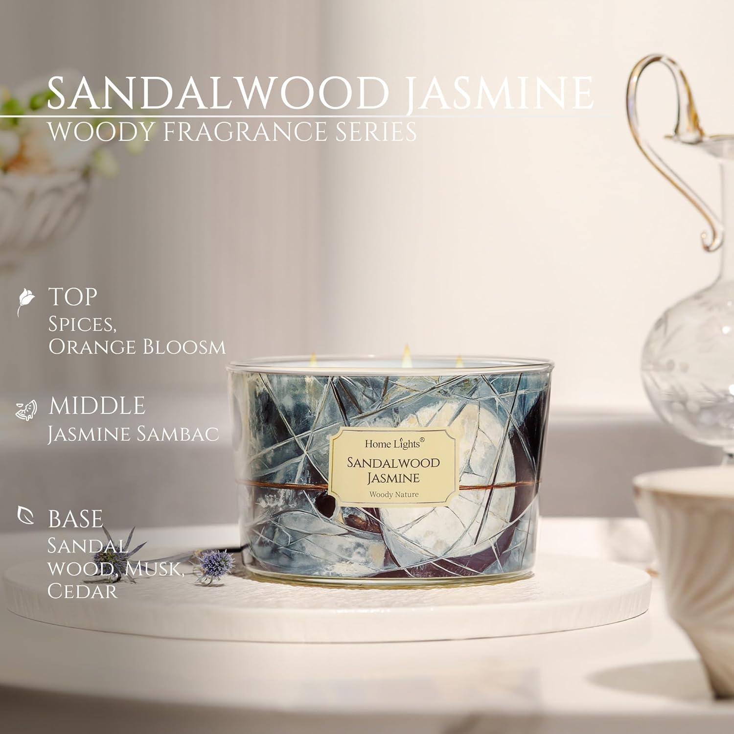 HomeLights Soy Wax Candles for Home Scented, 4-Wick Candles in Sandalwood Jasmine Scented, Industrial Chic Aromatherapy Candles Gift for Parties, Relaxing, 18oz