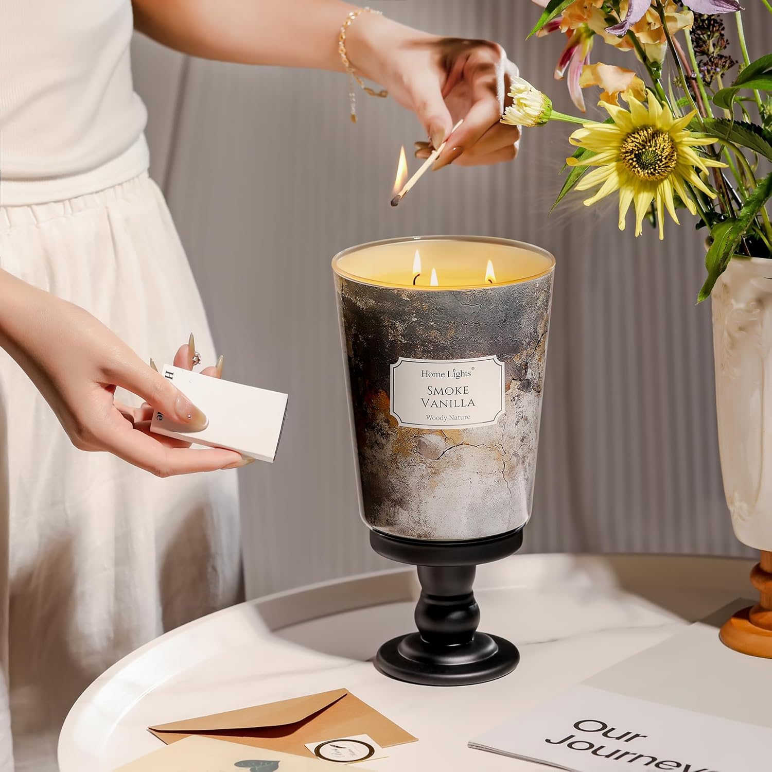 HomeLights Large jar Candle | 3-Wick Long-Lasting Scented Candles, 34oz Natural Soy Wax Candle for Home Scented, Industrial Chic Gifts for Women & Men, Smoke Vanilla
