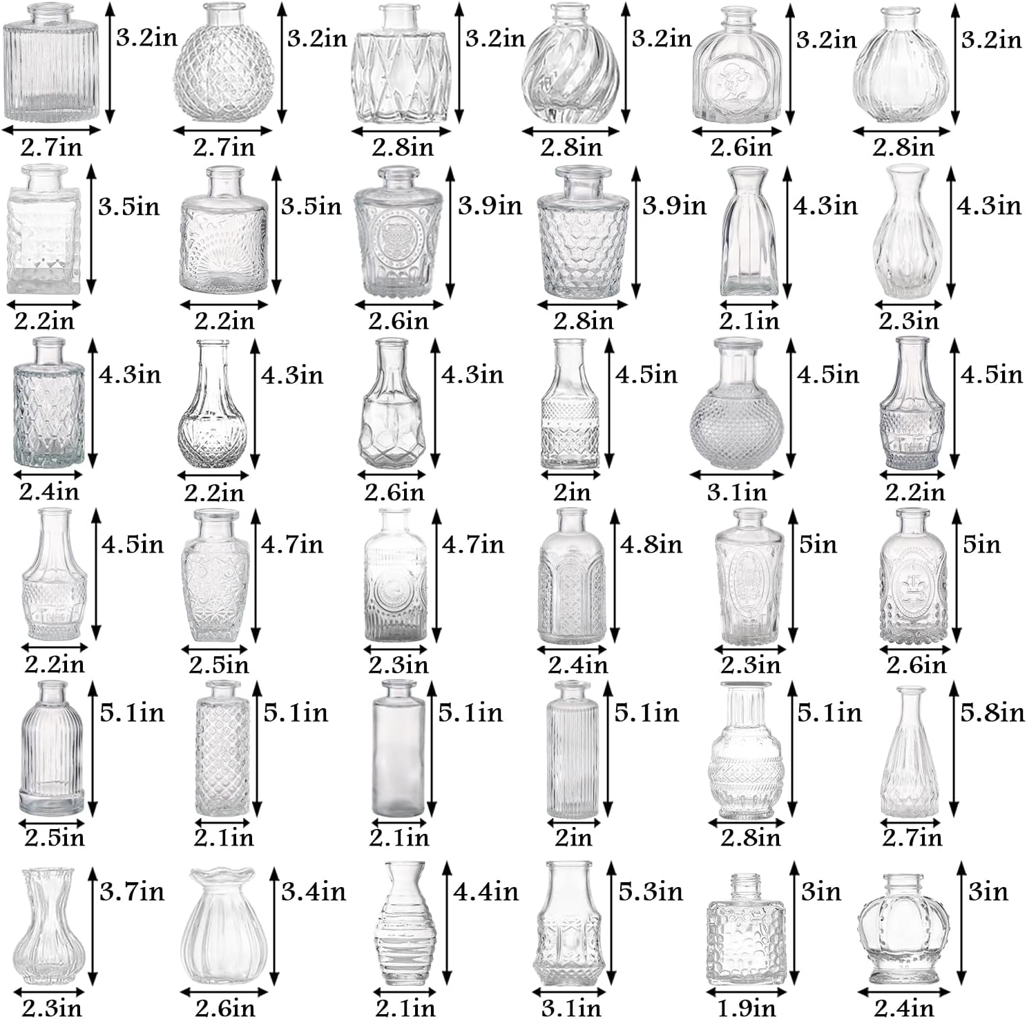 - Premium Quality: These glass flower vases are made of 100% premium Soda Lime glass, which is sturdy, leak-proof, easy to clean, and not easily broken. These vase sets have been drop-tested and are more sturdy than other glass vases. The handmade embossed pattern makes these vintage bud vases delicate and vivid
