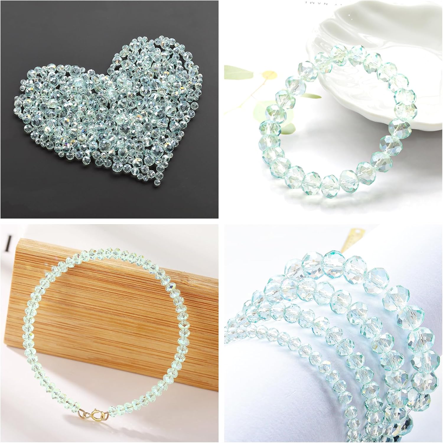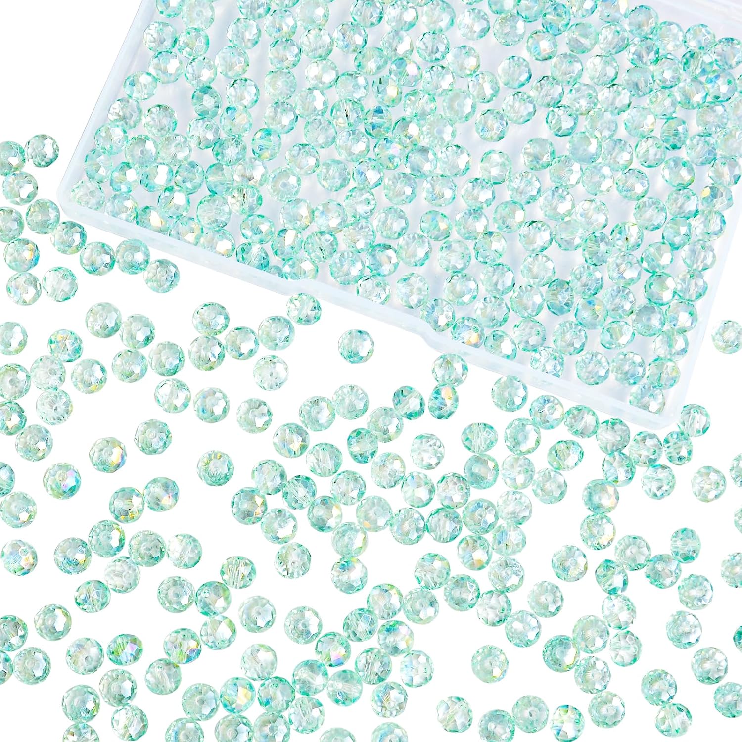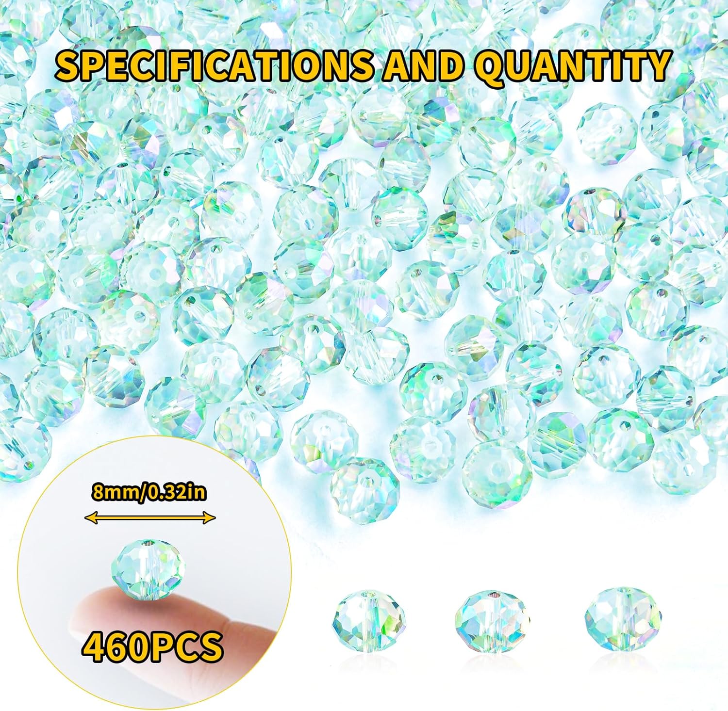 460Pcs 8mm Crystal Glass Beads for Jewelry Making Beads for Bracelets Necklace Pendants Making Supplies(Light Blue Green)