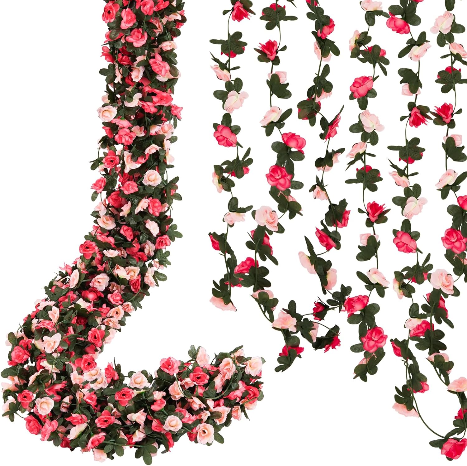 - Create a Romantic Atmosphere with Rose Garland: Enhance any space with our 2/8/12-pack rose garlands, each 8.2 feet long and featuring 45 lifelike roses per vine. Perfect for weddings, birthday parties, Christmas, bedrooms, or background walls, these rose garlands for decoration add an elegant touch to your special occasions.