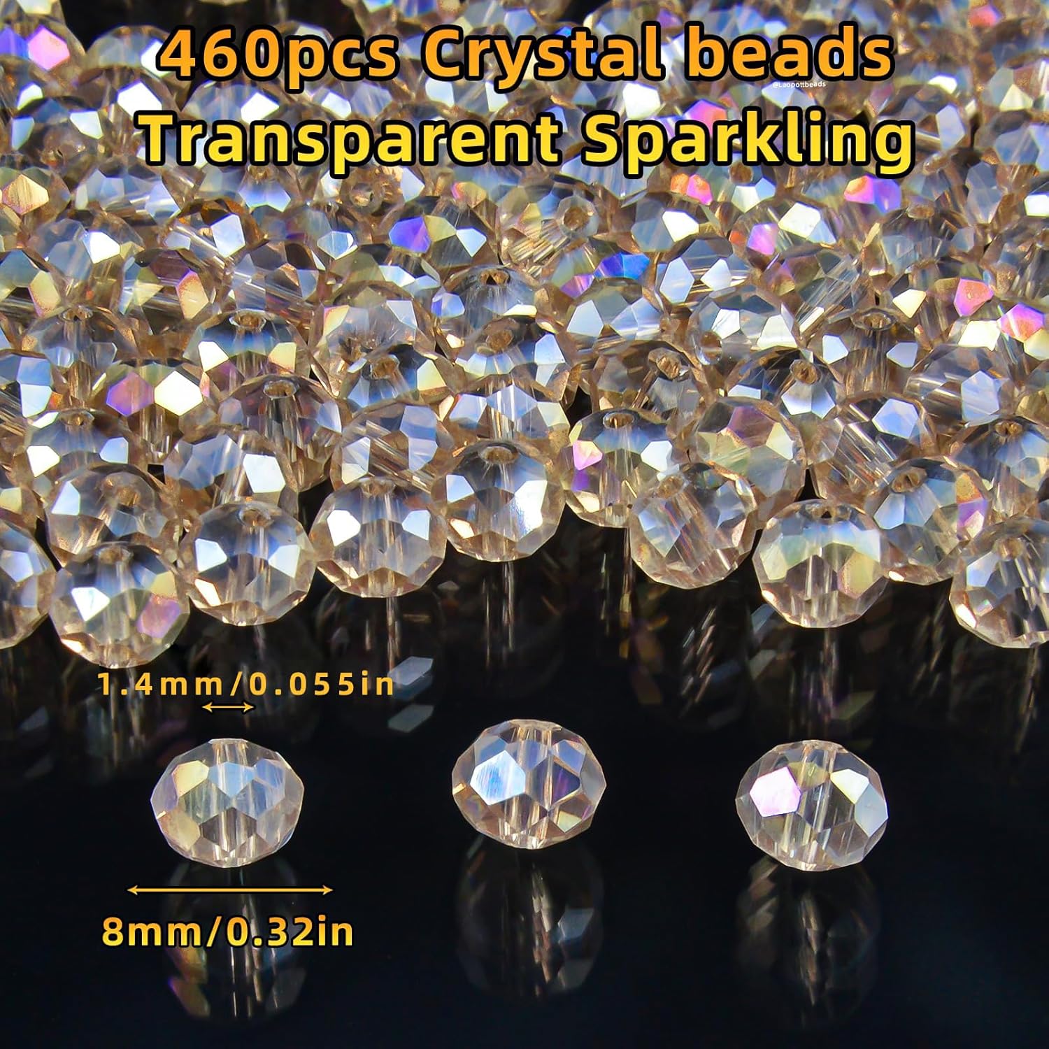 460Pcs 8mm Crystal Glass Beads for Jewelry Making Beads for Bracelets Necklace Pendants Making Supplies(Silver Champagner)