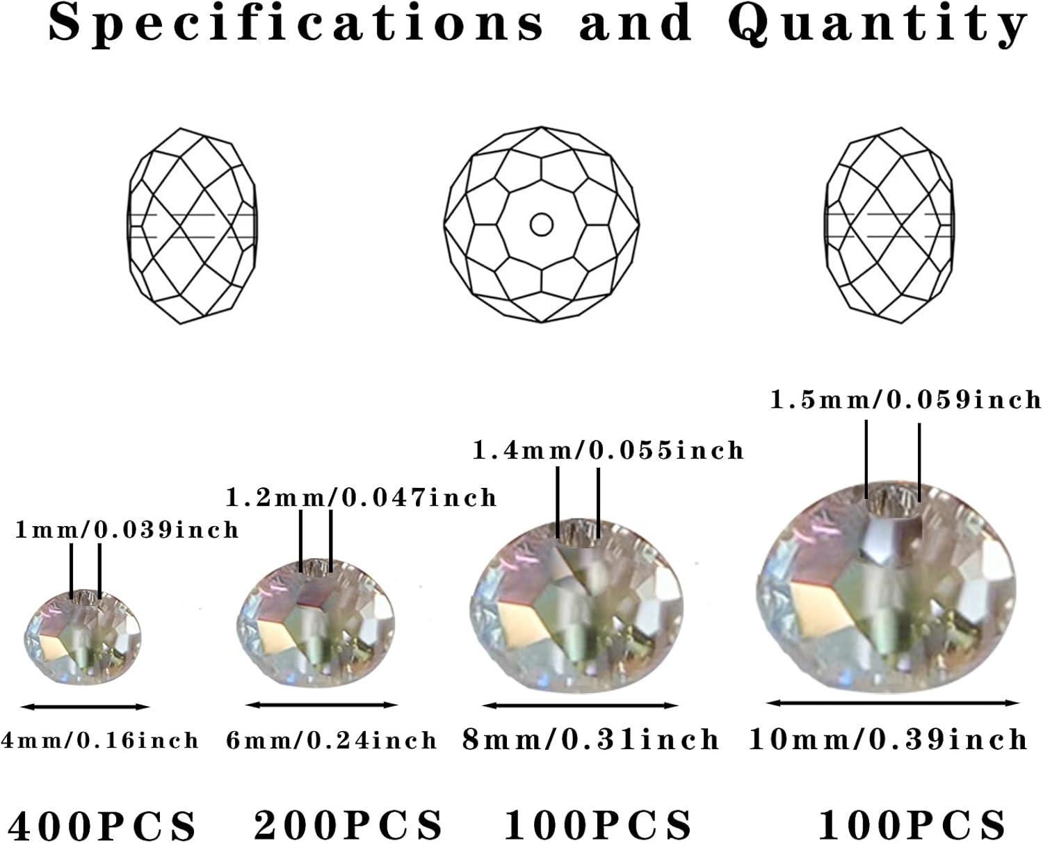 800Pcs 4/6/8/10mm Crystal Glass Beads for Jewelry Making Beads for Bracelets Necklace Pendants Making Supplies(Silver Champagne)