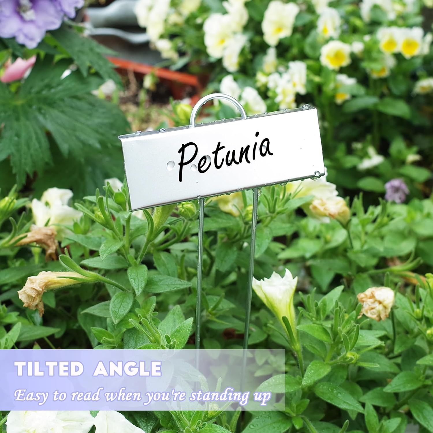 - ♥ Stable Two-Foot & Tilted Angle: The stable 2-foot design of the plant label stakes are simple to insert into the soil and will stay put for years to come. The slightly sloping angle makes it easy to read when you're standing up, it really helps to remind you what's the where.