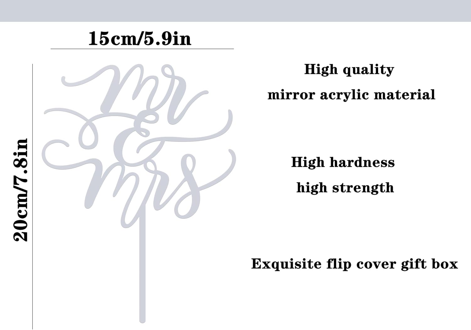 - Tip: Mirror acrylic cake topper has protective film on both sides to prevent fingerprints from sticking