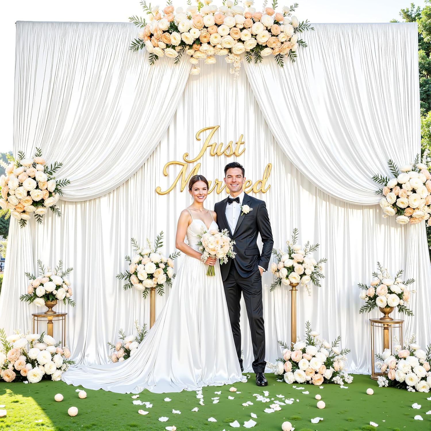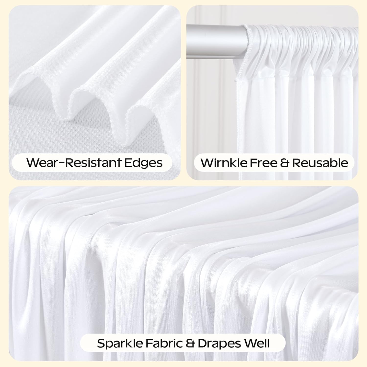 - White Shimmer Backdrop Package Included & Easy to install:The package included 2 Panels 5x10ft backdrop curtain,which can be arranged side by side to create a 10x10ft backdrop or used separately.Install way: Insert a rod or hang it on walls, ceilings, or temporary frames.