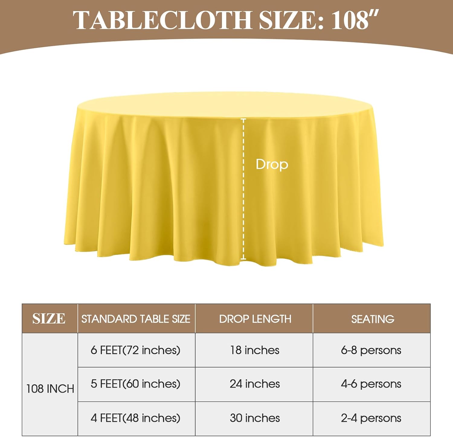 - Suitable Size: This polyester round tablecloth has multiple sizes to choose from, 90, 108, 120, 108 inches, which can meet the needs of tables of different sizes. In order to buy a tablecloth that is more suitable for your table, please measure the actual size of your table before purchasing and refer to our size chart