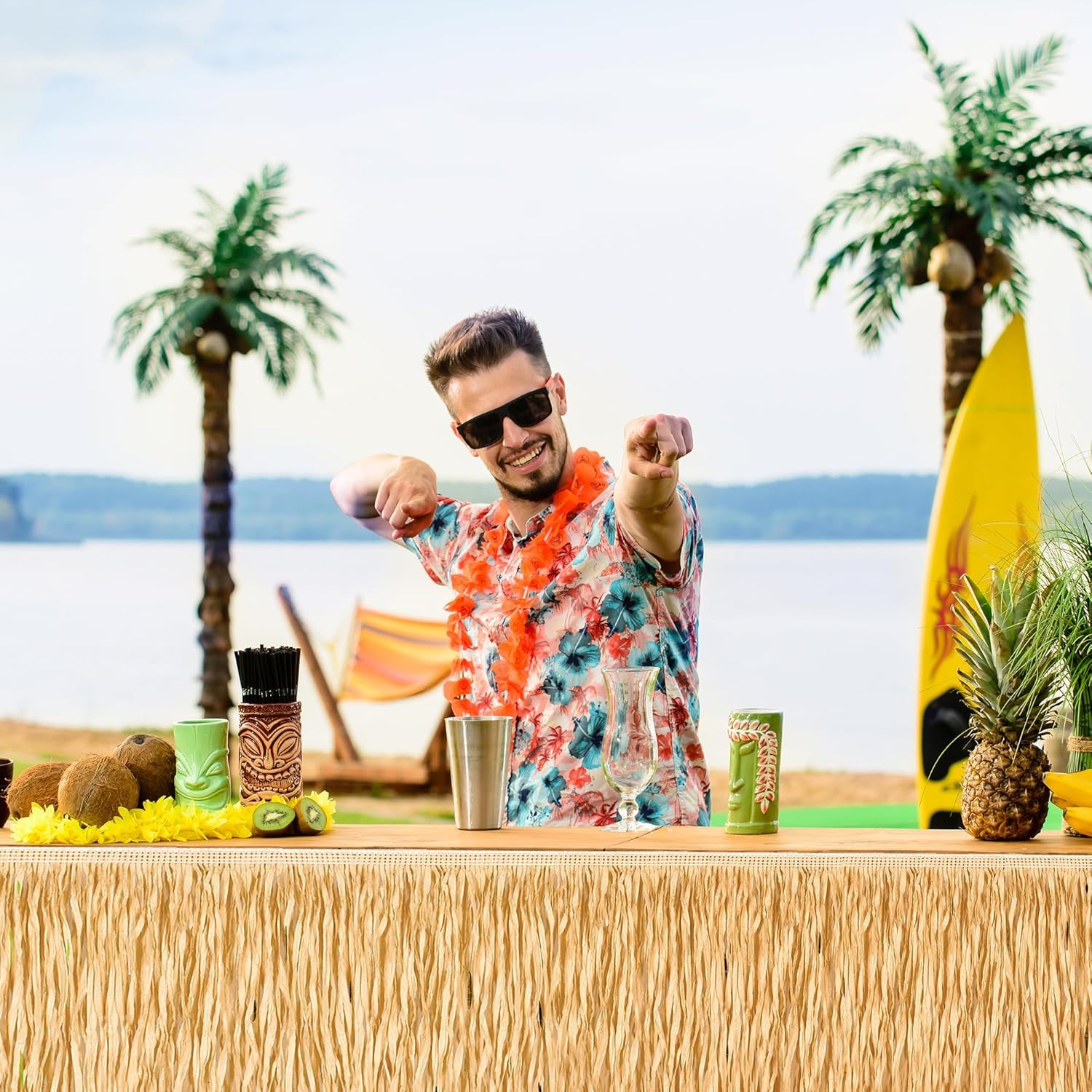 Fovths 2 Packs Luau Grass Table Skirt Fringe Dark Straw Grass Skirt 108 x 30 Inch Hibiscus Hawaiian Table Skirts Rectangle Tropical Luau Party Decorations for Hawaiian Decorations