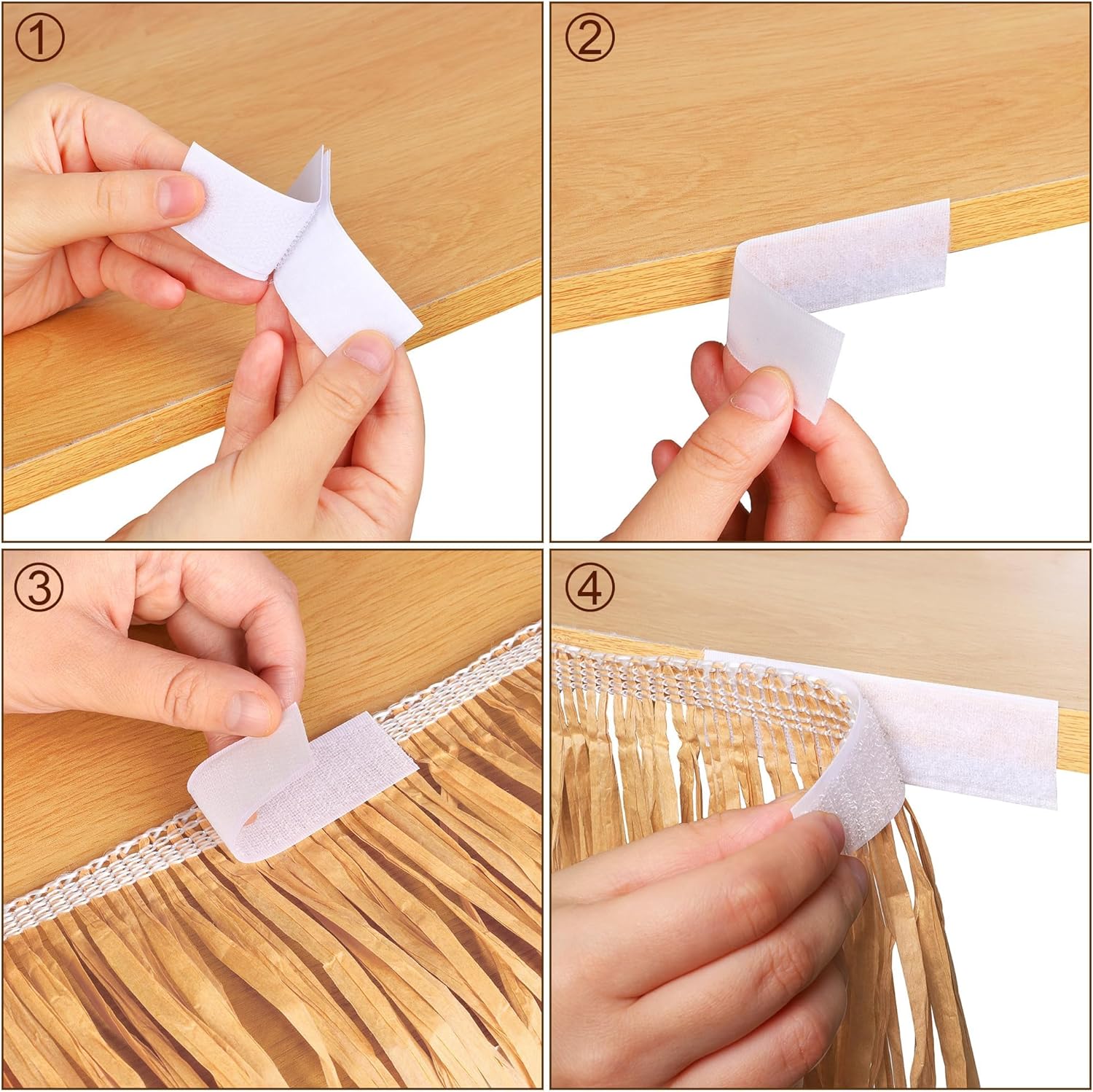 - Package includes: there are 2 packs of Hawaiian luau paper table skirts in each package, coming with 10 pairs of self-adhesive hoop and loops for use, sufficient for multiple-purpose use
