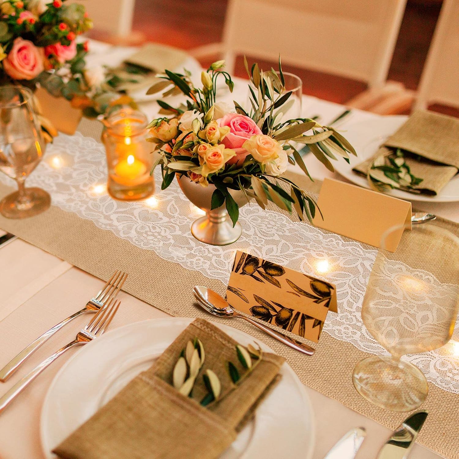- What You Can Receive: this package includes 12 burlap table runners and 12 strings of LED string lights, with 40 bright and rich LED lights, you'll have everything you need to create a beautiful and cozy atmosphere