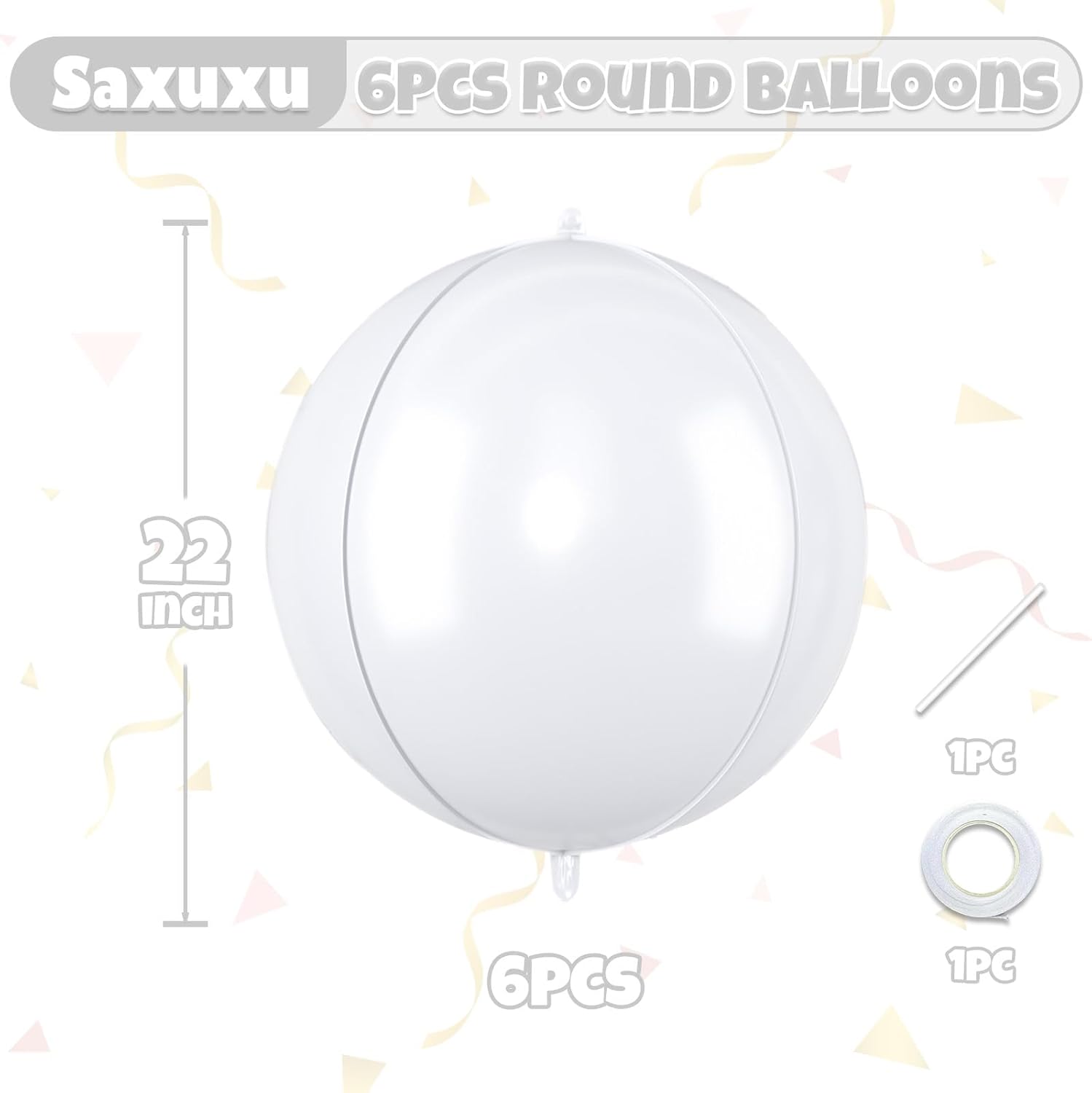 - Package Contains – 6 pcs 22-inch white round 4D foil balloons, 1 pc straw and 1 pc ribbon. These large, eye-catching balloons are perfect for elevating your party decor with a bold and stylish touch.