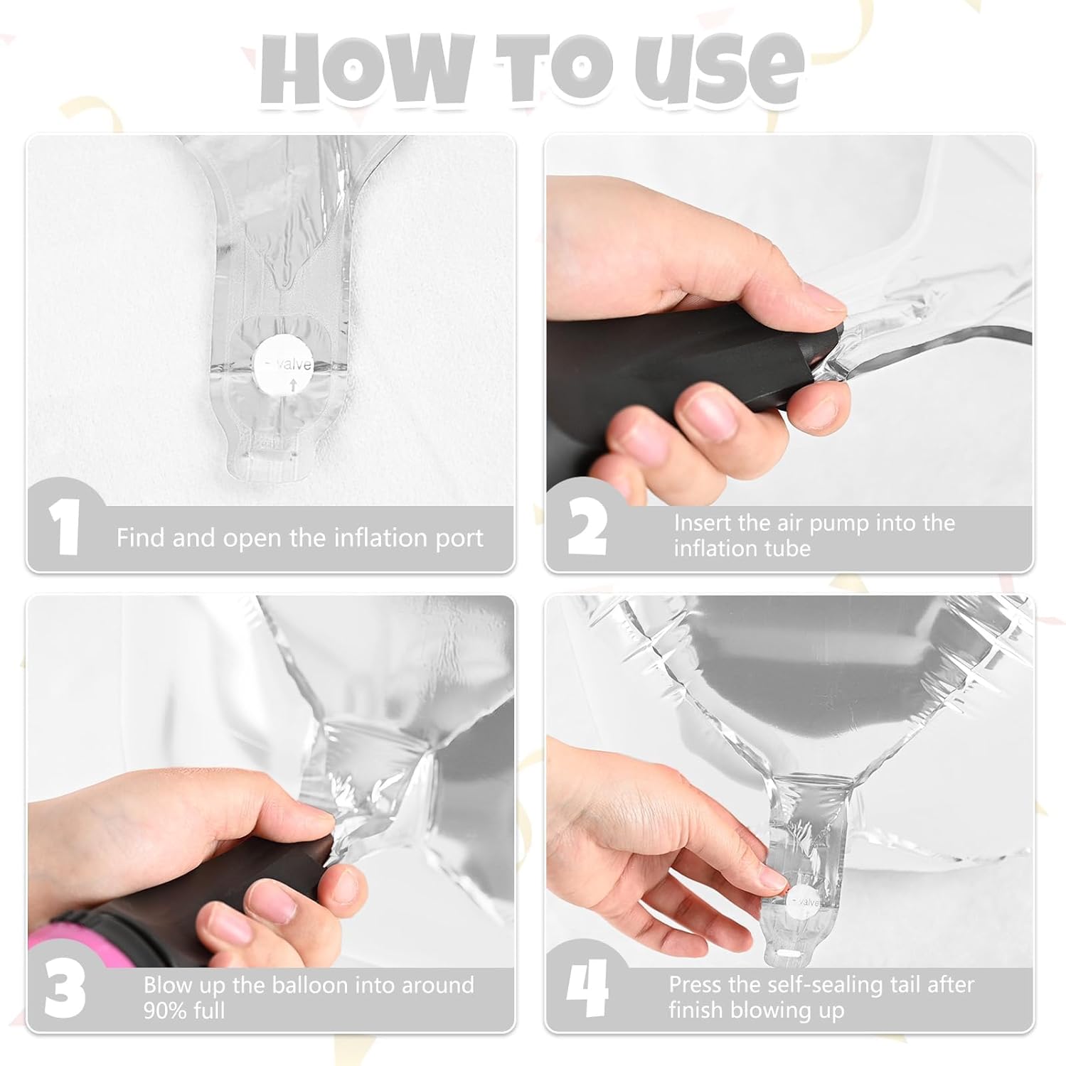 - Helium-Compatible & Self-Sealing – Effortlessly inflate with helium for floating displays or use air for hanging decor. The self-sealing design prevents leaks for extended use.