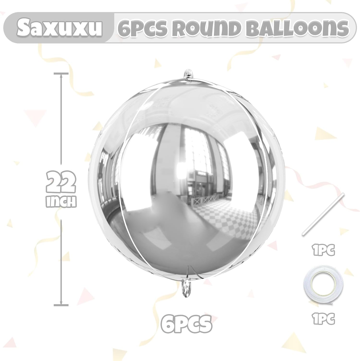 - 【PACKAGR CONTAIN】 This package includes 6 pcs 22-inch silver round 4D foil balloons, 1 pc straw and 1 pc ribbon. These large, eye-catching balloons are perfect for elevating your party decor with a bold and stylish touch