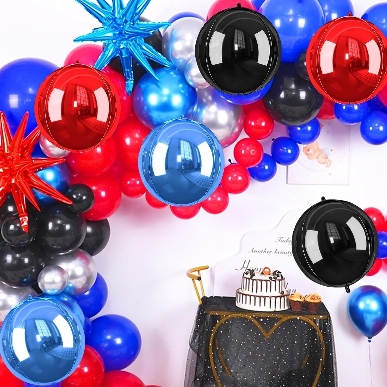 - 【PACKAGE CONTAIN】 This package includes 6 pcs 22-inch Blue Red Black round foil balloons, 1 pc straw and 1 pc ribbon. These large, eye-catching balloons are perfect for elevating your party decor with a bold and stylish touch.